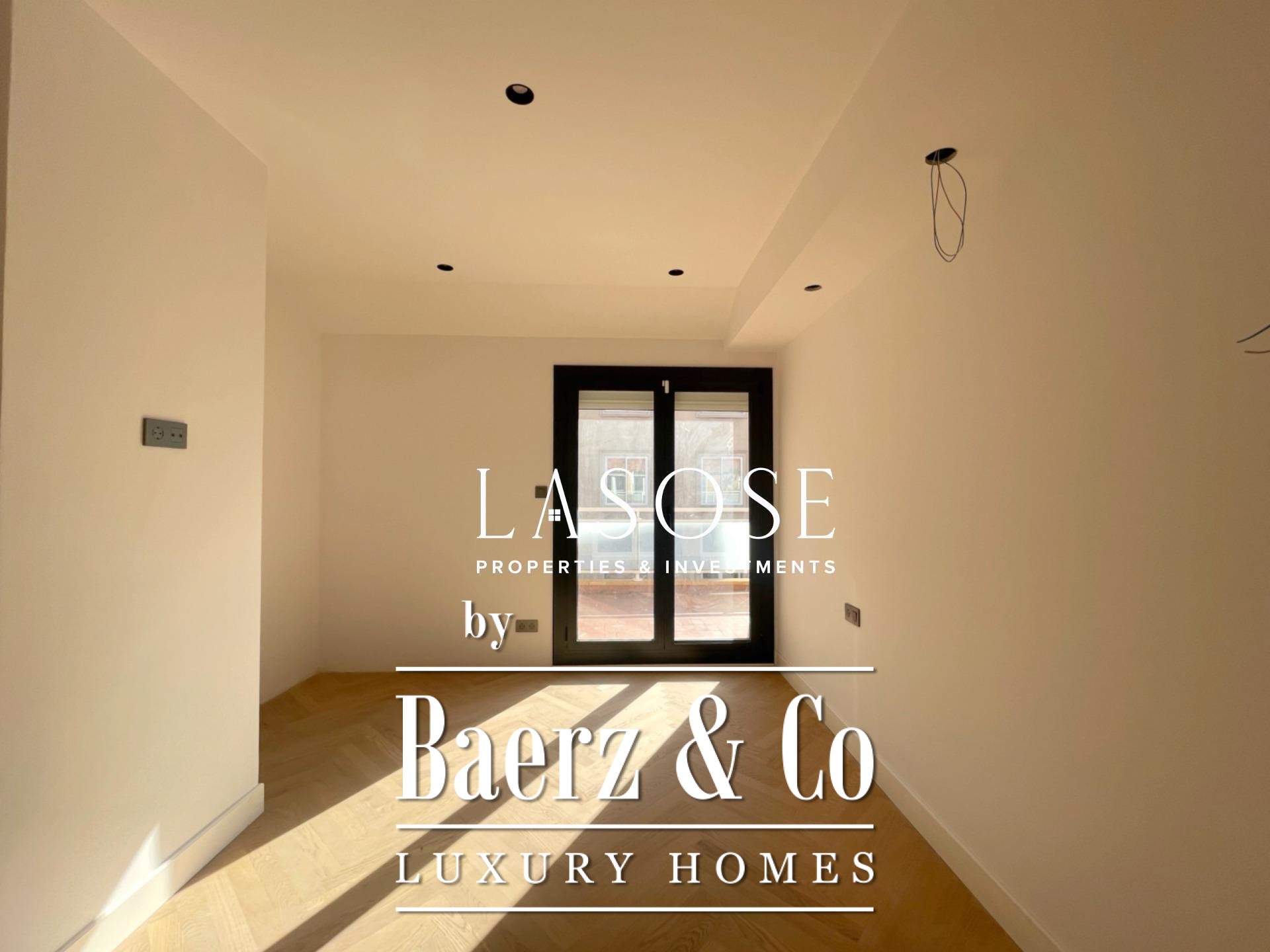 يؤدي المدخل إلى غرفتي نوم مزدوجتين، إحداهما جناح رئيسي فسيح مع حمام داخلي واسع. تحظى كلتا الغرفتين بإمكانية وصول مباشر إلى الشرفة المشمسة، مما يعزز الإضاءة الطبيعية والإحساس بالخصوصية. تضم منطقة النهار مطبخًا عصريًا مع مساحة طعام وغرفة طعام، وكل مساحة منها موجهة نحو الشرفة الكبيرة التي تشكل قلب المنزل.