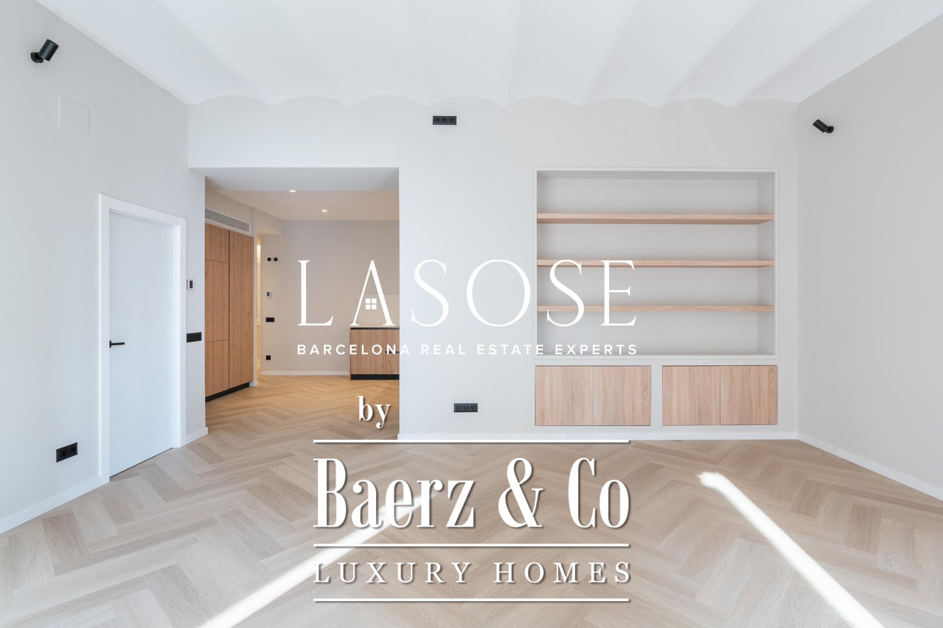 تمنح الأسقف العالية المضاءة بتاج الأقواس الكاتالونية والمصاريع الخشبية الأصلية الشقة ضوءًا ودفئًا فريدين، في حين يؤطر الشرفة المشرقة الواجهة التاريخية للكاتدرائية. تنضح منطقة المعيشة والطعام بجو من الهدوء والرقي غير المتكلف، موحدة بعناصر معمارية أصيلة. المطبخ ذو التصميم المفتوح مزود بالكامل بخزائن أنيقة وأجهزة منزلية متطورة، ليجمع بفعالية بين الوظيفة والنقاء الجمالي.