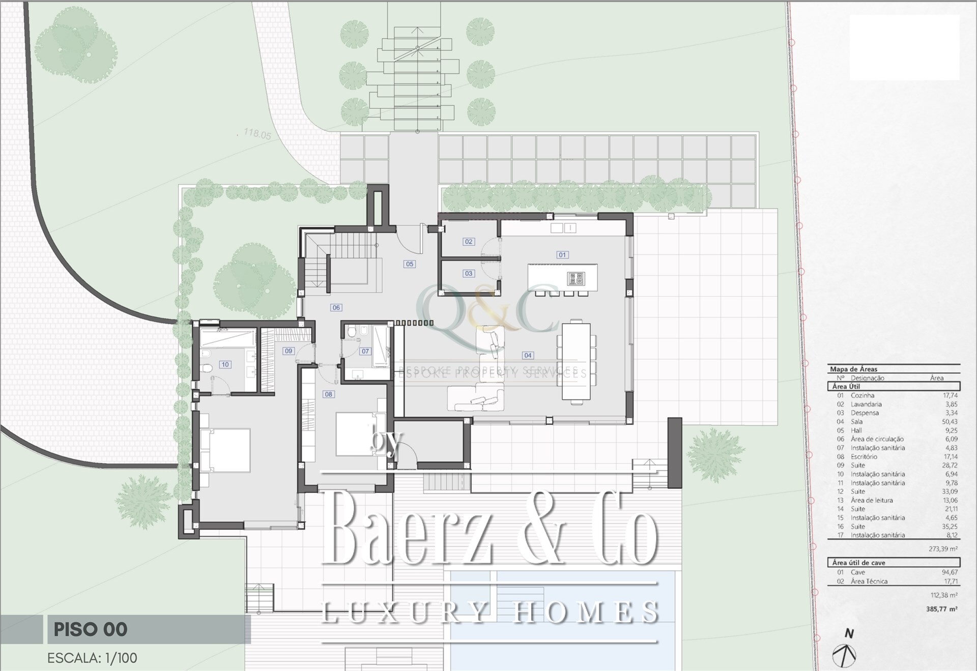 تتكون كل فيلا من مساحة سكنية تبلغ 386 مترًا مربعًا، وتقام على أراضٍ منفصلة بمساحة 5,469 مترًا مربعًا لكل فيلا. يركز التصميم المعماري على المساحات الداخلية المفتوحة، والإضاءة الطبيعية الوفيرة، والنوافذ الكبيرة التي تؤطر مناظر خلابة على ريف منطقة ألغارف. تُعزز الحدائق الخاصة، وأحواض السباحة، والتراسات الواسعة العلاقة السلسة بين المساحات الداخلية والخارجية.