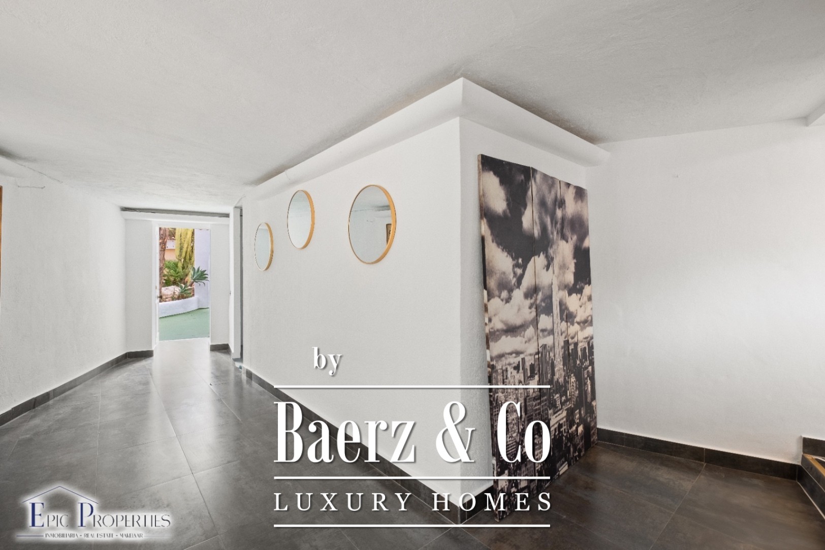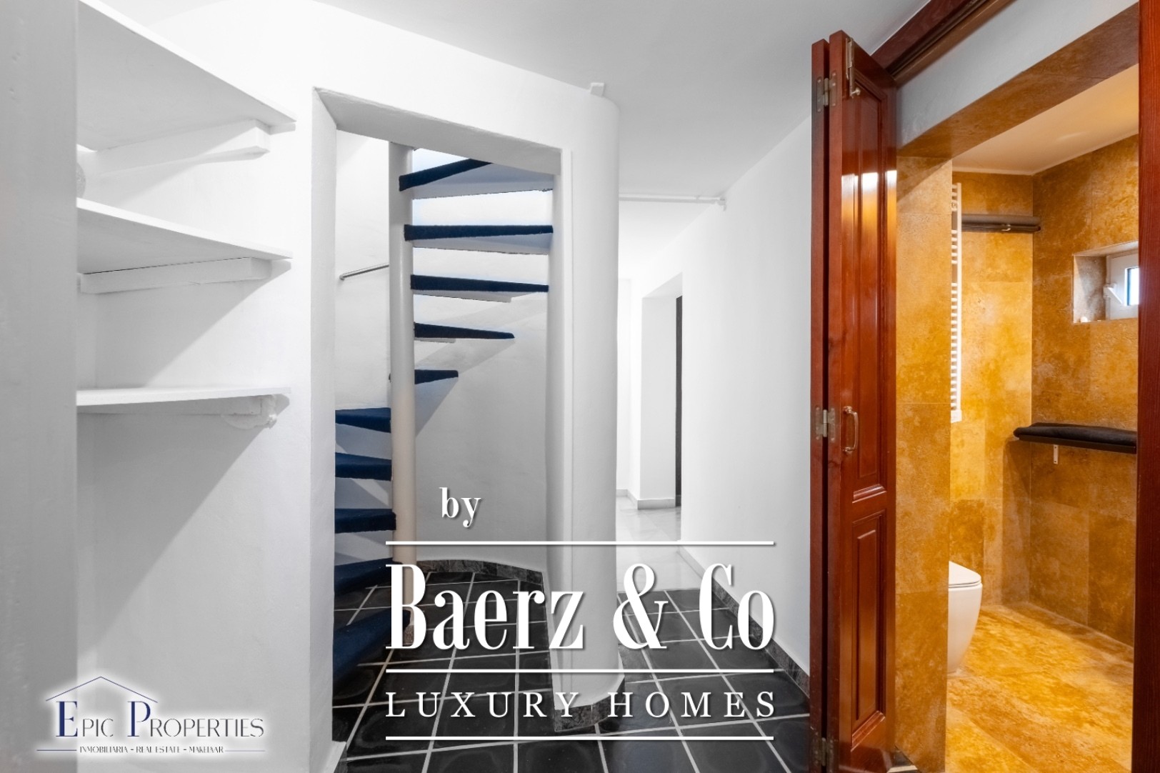Diese moderne Villa in Altea bietet 364 m² lichtdurchfluteten Innenraum innerhalb eines 2.100 m² großen, abgeschiedenen Gartens und schafft ein privates, authentisch mediterranes Wohnerlebnis. Die Architektur erstreckt sich über zwei Ebenen im Haupthaus, zugänglich über einen diskreten privaten Eingang. Im Erdgeschoss empfängt eine großzügige Diele, die nahtlos in ein sonnenverwöhntes Wohnzimmer übergeht sowie in eine komplett ausgestattete Küche mit direktem Zugang zum Abstellraum. Das Obergeschoss beeindruckt mit einer ruhigen Schlafsuite, eigenem Badezimmer und einer großzügigen Terrasse mit spektakulärem Meerblick und dem besonderen Licht der Küste.