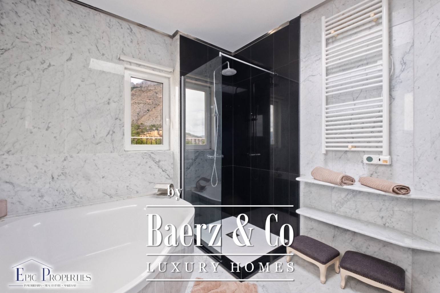 Draußen gehören zwei einladende Swimmingpools, einer davon mit Wasserfall, ein Solarium mit separatem Zugang, ein Grillbereich und gepflegte Gärten zum eleganten Lebensgefühl. Komfort wird durch großzügige Parkmöglichkeiten, Carport und durchdachte Ausstattungsdetails wie Doppelverglasung, Sicherheitstür und eingezäuntes Grundstück komplettiert. Diese Villa erfüllt höchste Ansprüche an Authentizität, Ruhe und zeitlose Gelassenheit in Altea. Die moderne Villa präsentiert sich als erlesene Wahl für alle, die eine Luxusvilla zum Verkauf in Altea mit beispielhaften Innen- und Außenbereichen suchen.