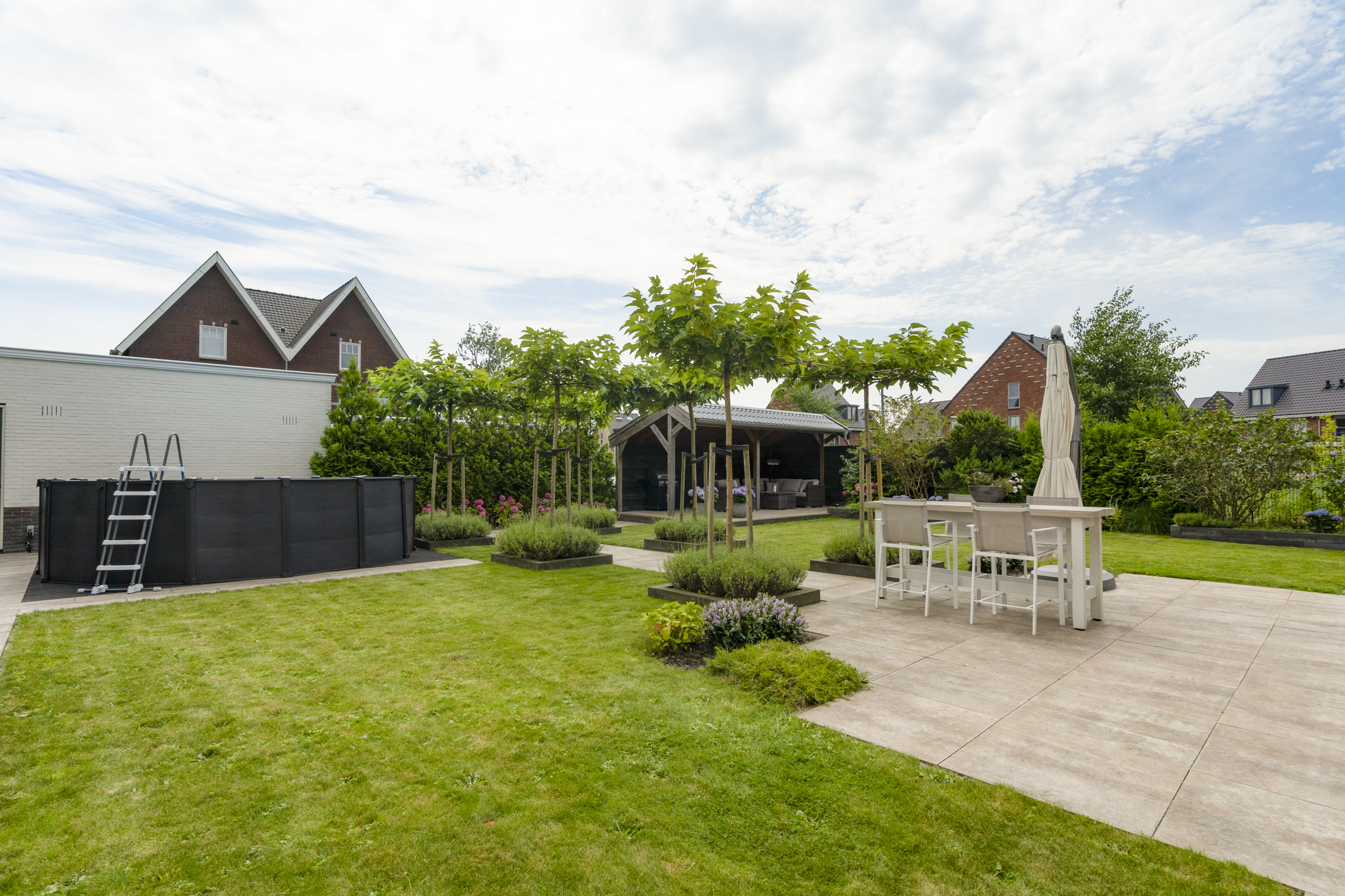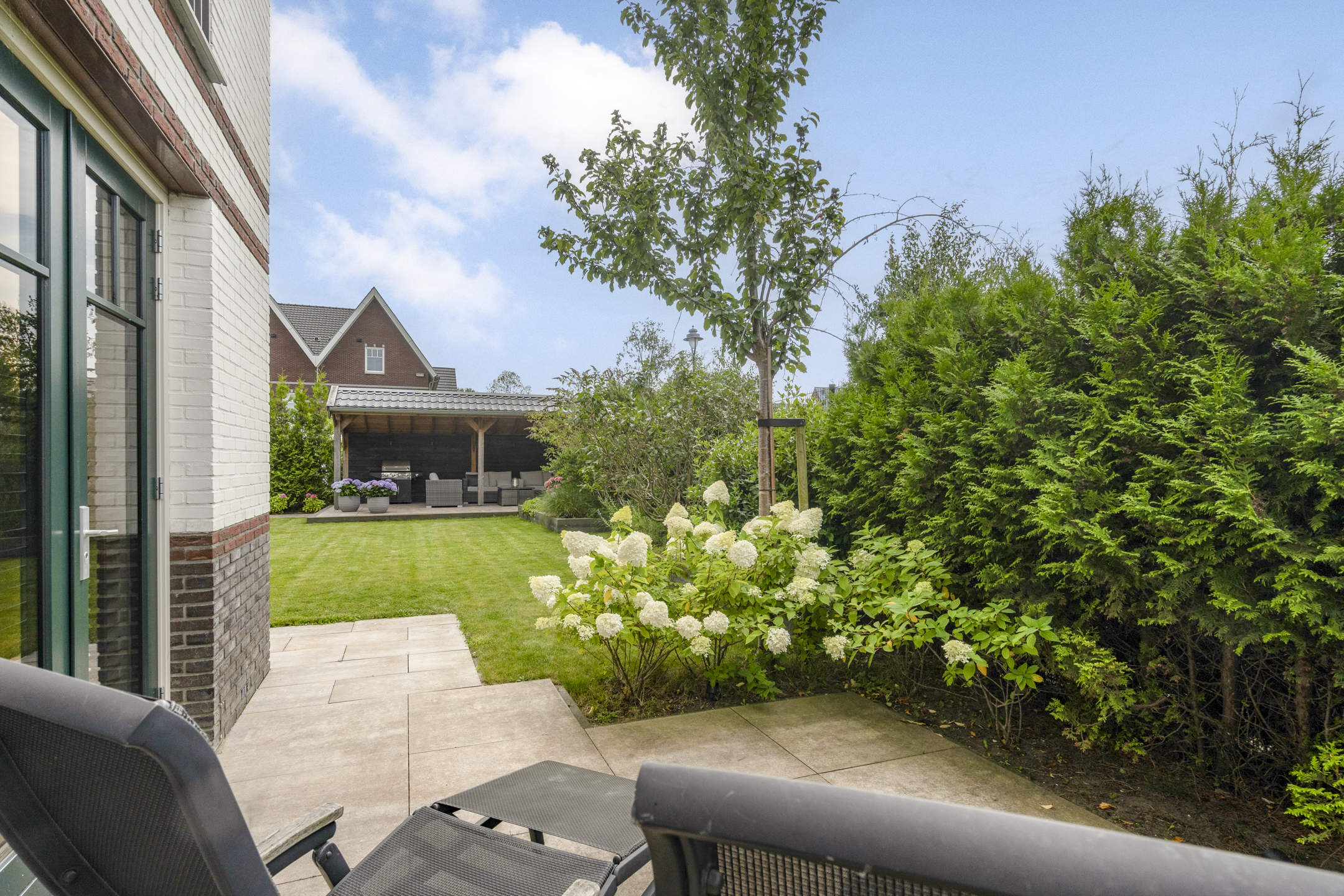 Wohn- und Essbereiche verfügen über eine maßgefertigte Cine-Wand und einen effizienten Gaskamin; mehrere französische Türen führen direkt in den nach Südosten ausgerichteten Garten. Die Küche ist mit Geräten von Miele, Siemens und Bora ausgestattet und erfüllt höchste kulinarische Ansprüche. Im Außenbereich sorgen eine überdachte Veranda von 22 m², eine beheizte Lounge und ein privater Swimmingpool für eine Oase zum Entspannen – das ganze Jahr über. Das Grundstück umfasst zudem eine Garage sowie mehrere Stellplätze und betont so Privatsphäre und Bequemlichkeit.