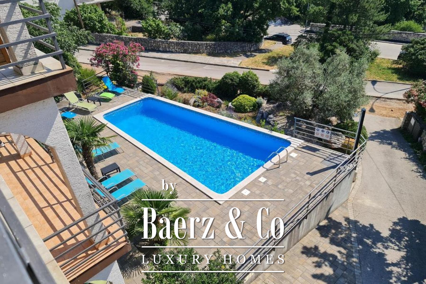 Das Apartmenthaus Crikvenica bietet einen seltenen Ausblick auf die Adria und befindet sich auf einem gepflegten, 759 m² großen Grundstück mit weitreichendem Meerblick. Diese freistehende Immobilie umfasst 602 m² Wohnfläche, verteilt auf ein Erdgeschoss, zwei Obergeschosse und ein hohes Dachgeschoss. Sie liegt ruhig, nur 500 Meter von der Küste entfernt.