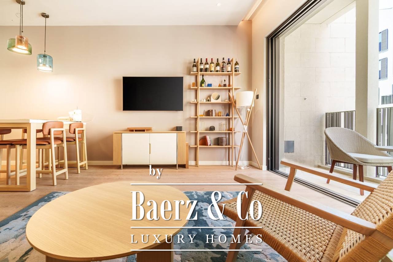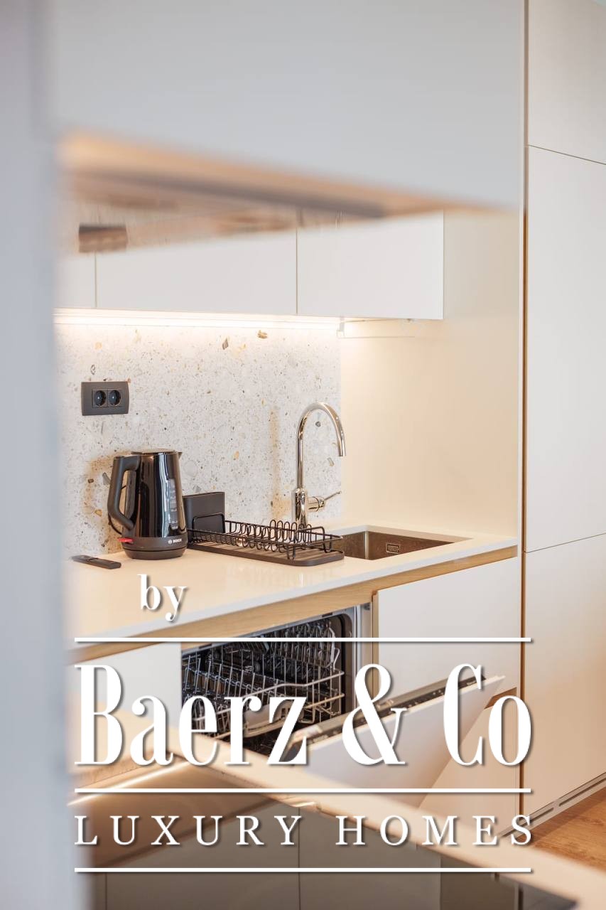 Die Raumaufteilung ist klar und ruhig gestaltet: Vom Eingangsbereich gelangen Sie in einen lichtdurchfluteten Wohnbereich, eine moderne Küche mit Essplatz, ein Schlafzimmer sowie ein stilvolles Badezimmer. Die Wohnung ist vollständig möbliert und sofort bezugsfertig – ideal auch als gehobene Kapitalanlage zur Vermietung. Gradliniges Design und viel Tageslicht prägen den modernen Wohnstil.