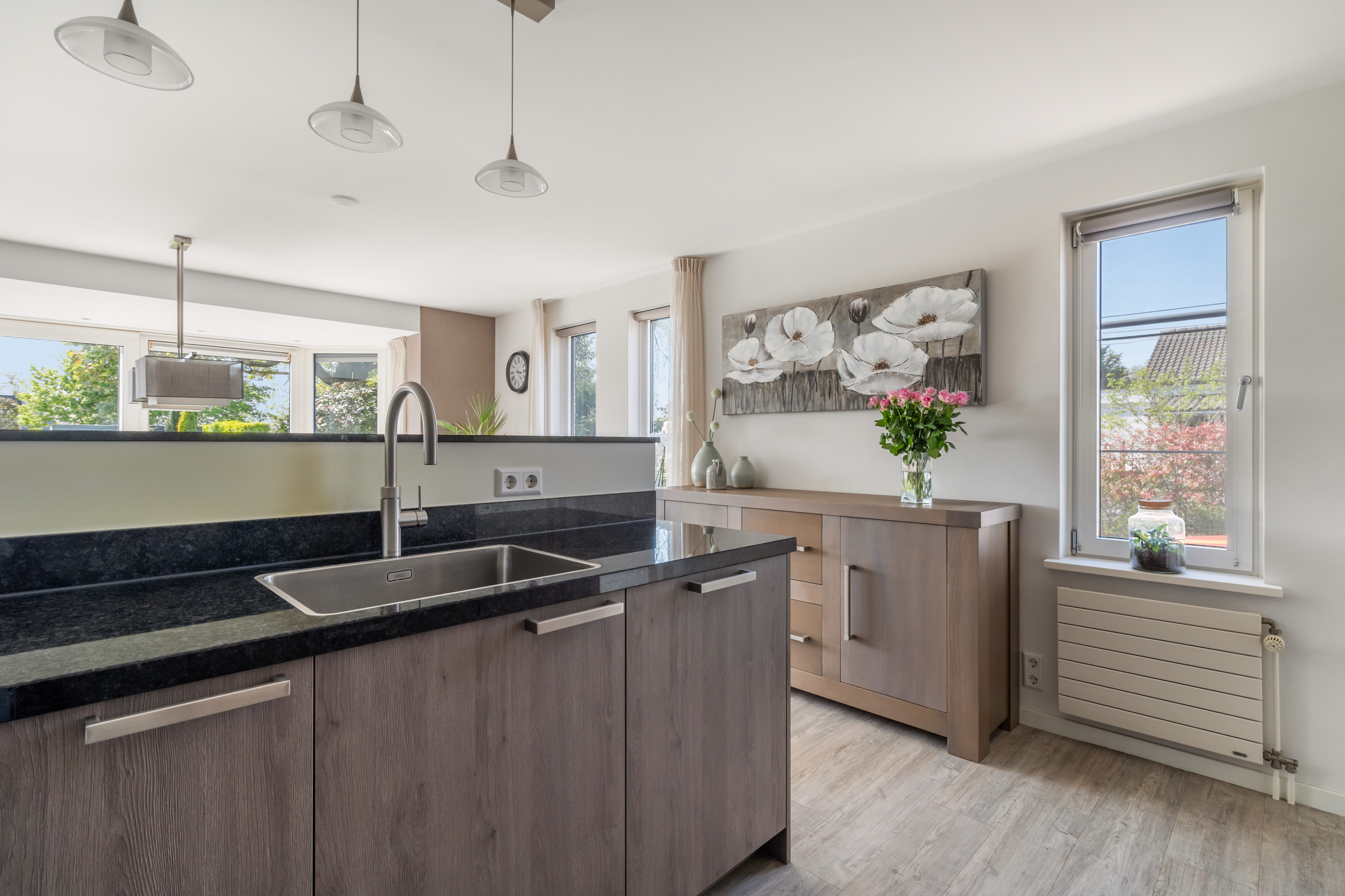 Dieses freistehende Haus in Zevenhoven bietet eine seltene Balance aus Privatsphäre, natürlicher Verbundenheit und zeitgemäßer Effizienz entlang der Ufer des Kromme Mijdrecht. Auf 167 m² durchdacht gestalteter Wohnfläche verteilen sich drei Schlafzimmer und ein Badezimmer, ergänzt durch ein angelegtes Grundstück von 1.006 m², auf dem Wasser, Licht und feine Handwerkskunst den Alltag prägen. Der Haupteingang liegt in einem gepflegten Vorgarten und führt in eine helle Diele, in der dezente Materialien und raffinierte Details ein Gefühl stiller Beständigkeit vermitteln. Flexible Doppeltüren sorgen für Diskretion – ideal, um Berufliches und Privates zu vereinen oder Gäste willkommen zu heißen. Das Wohnzimmer ist von großzügigen Fenstern, einem Kaminofen und Schiebetüren zur Gartenanlage eingerahmt. Die moderne offene Küche ist mit Siemens-Geräten sowie einem Quooker ausgestattet; das angrenzende Erkerfenster schafft Raum für ein stilvolles Dinner am Fluss. Das Homeoffice auf der Rückseite profitiert vom Tageslicht und ermöglicht konzentriertes Arbeiten oder kreative Tätigkeiten. Das ausgebaute Untergeschoss mit Lounge, Schlafzimmer und Hauswirtschaftsbereich erweitert das Gästeangebot. Im Obergeschoss bieten zwei Hauptschlafzimmer Komfort und Weitblick, eines mit Balkon und Klimaanlage. Das Badezimmer besticht durch durchdachtes Design, natürliche Belichtung und umfassende Ausstattung. Im Außenbereich wurde der liebevoll gestaltete Garten 2017 neu entworfen: eine erhöhte Terrasse auf Hartholzdielen, ein erneuertes Ufer und ein Bootssteg für entspanntes Wohnen am Wasser – eine exklusive Luxusvilla zum Verkauf in Zevenhoven. Die überdachte Veranda verspricht wetterunabhängigen Komfort das ganze Jahr über und unterstreicht den Anspruch des Hauses auf entspanntes Wohnen. Gesicherte Privatparkplätze mit Kameraüberwachung und einer Ladestation für E-Fahrzeuge ermöglichen reibungslose Ankünfte. Ein vollständig isoliertes Studio-Gartenhaus erfüllt praktische Bedürfnisse, während Nachhaltigkeit durch den Energielabel A und 20 Solarpaneele mit einer Jahresleistung von etwa 7.000 kWh gewährleistet wird. Fußbodenheizung, Dreifachbelüftung und modernisierte Infrastruktur machen das Haus zukunftssicher. Inmitten der idyllischen Landschaften des Groene Hart gelegen, vereint diese Immobilie Rückzugsmöglichkeiten mit guter Anbindung an alle Annehmlichkeiten und lädt ein, das Leben am Fluss in seiner ganzen Fülle zu genießen.