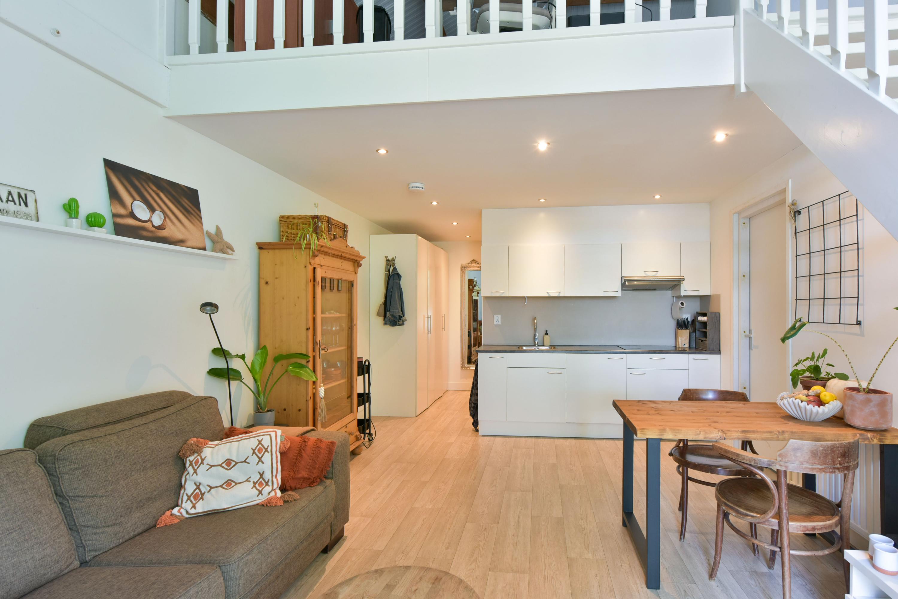 Each unit has its own entrance. You step directly into a bright and cosy living room with space for a sitting area and small dining table. The modern, functional kitchenette includes an induction hob, extractor and fridge — everything needed for independent living. A neat bathroom with a walk-in shower, sleek vanity and toilet is adjacent. The fresh, modern finish gives the space a pleasant, contemporary feel.