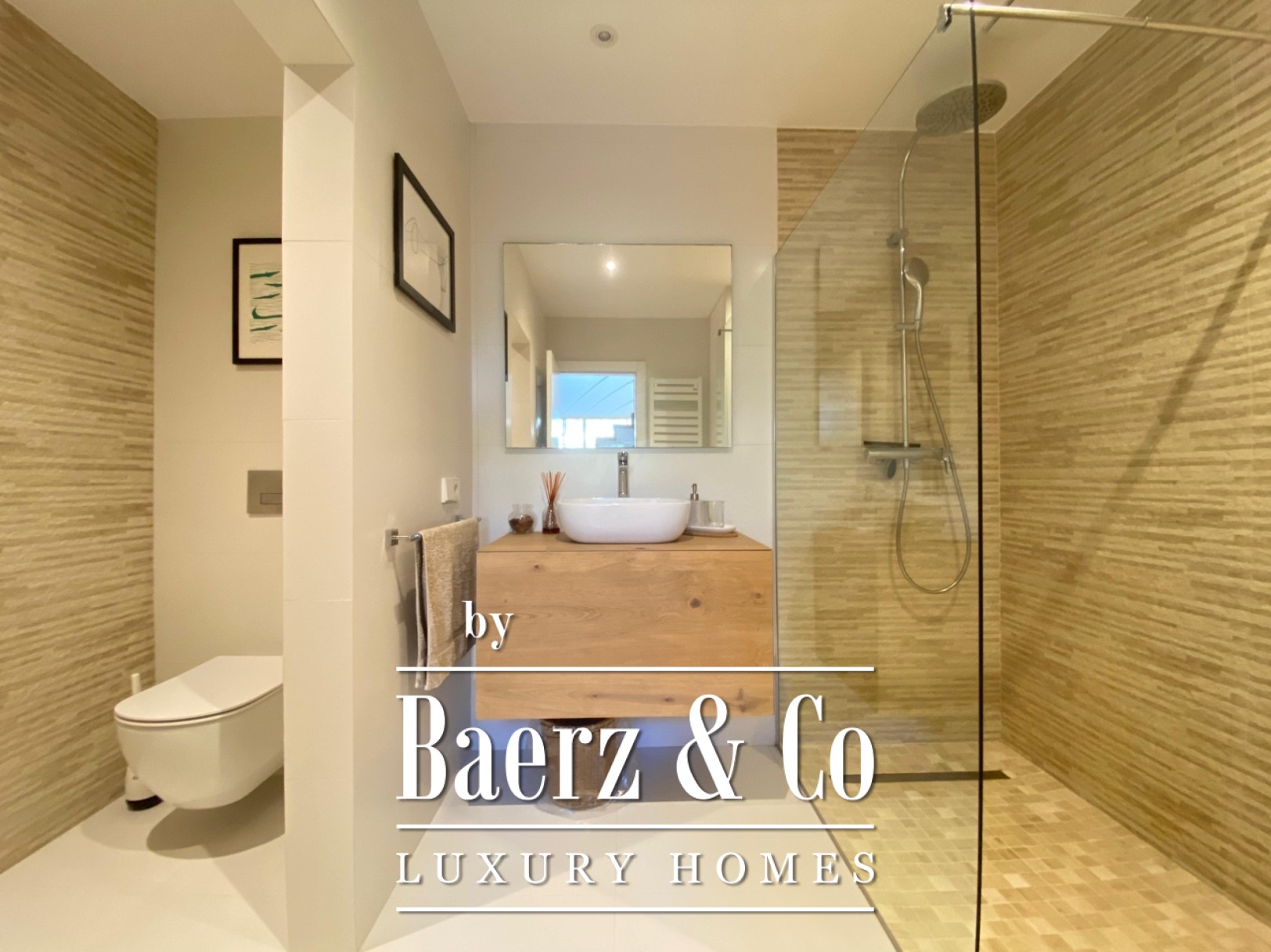 The heart of the villa is a 90 m² living room anchored by a fireplace and framed by expansive windows, leading to a terrace with sweeping vistas. The designer kitchen, equipped with high-end appliances, is complemented by a generous dining area tailored for gatherings. Four bedrooms and three bathrooms ensure space and privacy, while the master suite enjoys direct access to a broad glazed terrace and uninterrupted views.