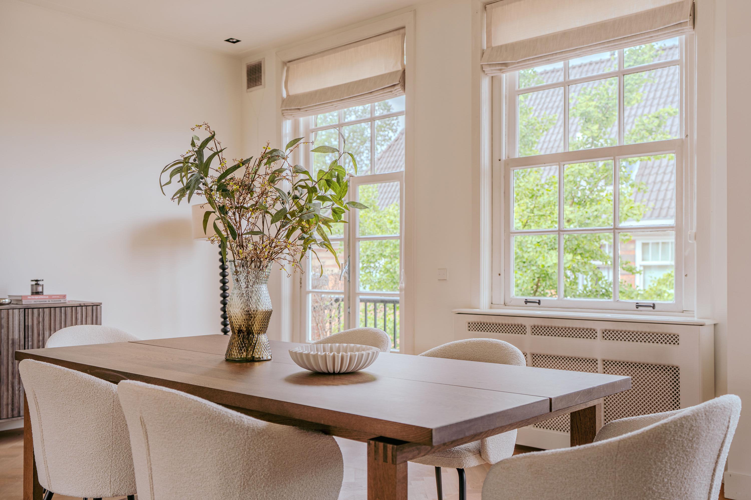 Stylishly finished and exceptionally bright double upper-level apartment (approx. 163m²) with a spacious roof terrace, two balconies, luxury kitchen, and atmospheric living room in a prime location in Amsterdam-Zuid!