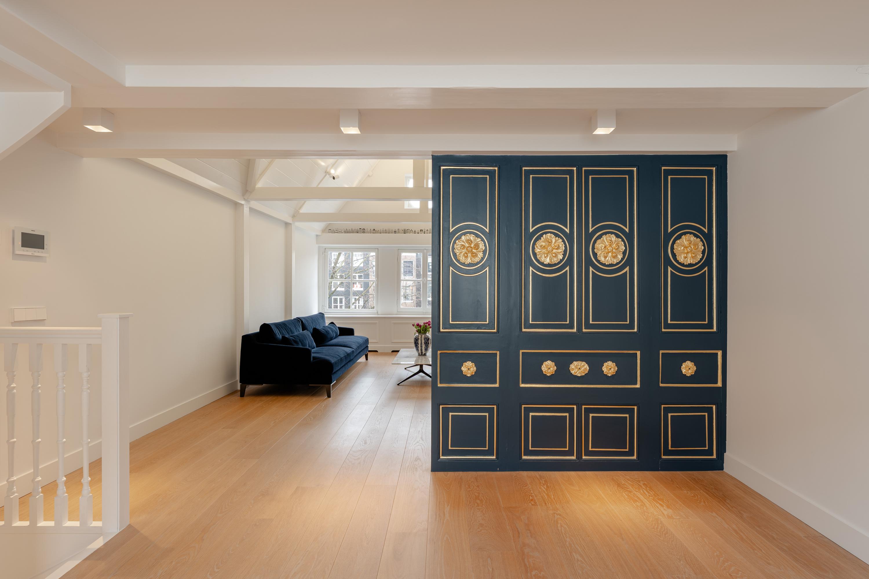 De ruimte beschikt over een 19e-eeuwse schouw van Piet Jonker en karakteristieke orginele deuren. De bloemornamenten op deze deuren zijn door een specialist met bladgoud afgewerkt. De zichtbare balkconstructie, hoge nok en de sfeervolle gashaard zorgen voor een bijzonder ruimtelijk en warm karakter.
