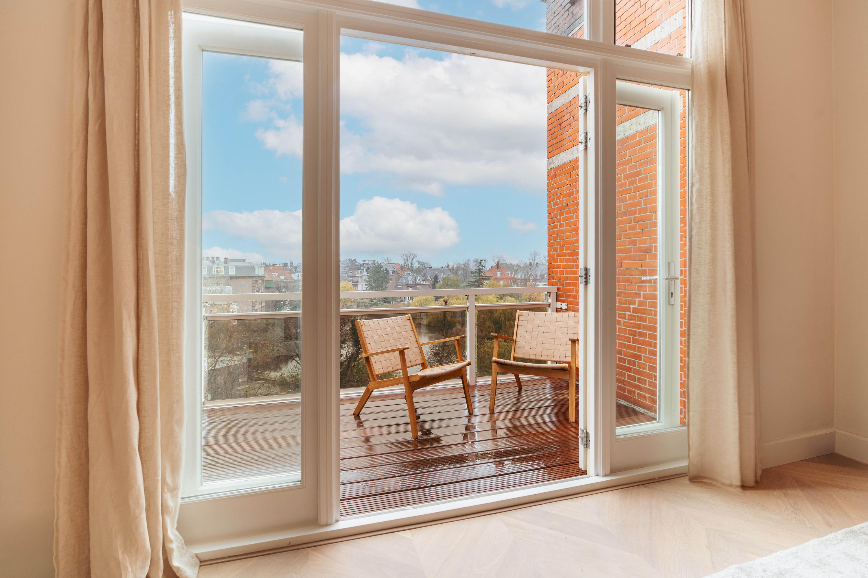 What immediately catches the eye is the unique view over the large pond on the Sophialaan, bordering the Vondelpark. This view can be enjoyed throughout the entire space, even from the kitchen. French doors open onto the deep balcony, which offers a panoramic view over the pond and brings an abundance of natural light into the apartment.