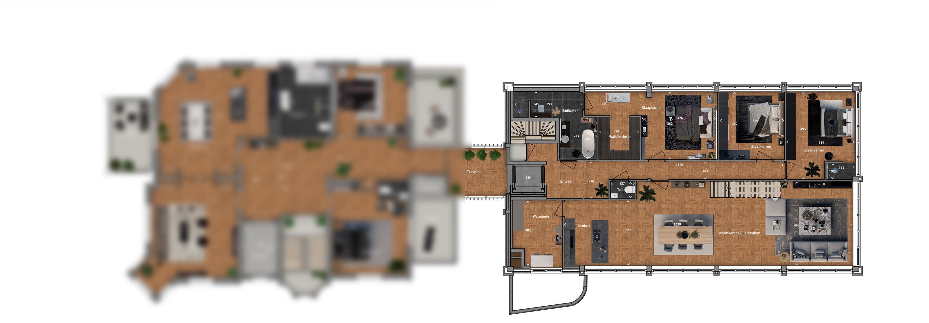 In Villa van Oranje you will find this exceptionally spacious, single-level apartment of 179 m², including a private parking space and bicycle storage, located directly next to Oranjepark. A rare combination of space, tranquility, and urban comfort, just a five-minute walk from the centre of Apeldoorn. Here you live surrounded by greenery, while the city is within easy reach. A lift will be installed in the building, making the apartment both future-proof and easily accessible.