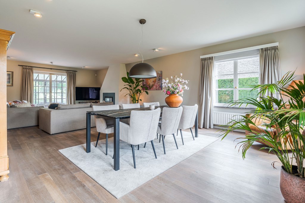 De ruim opgezette L-vormige living is voorzien van een parketvloer, een ingebouwde houtkachel en heeft een directe verbinding met de serre. Door de grote raampartijen is er veel natuurlijke daglichttoetreding in de ruimte. Vanwege het lichtinval zijn er diverse gezellige hoekjes te creëren. Aansluitend heeft u toegang tot het kloppende hart van deze woning, de leefkeuken.