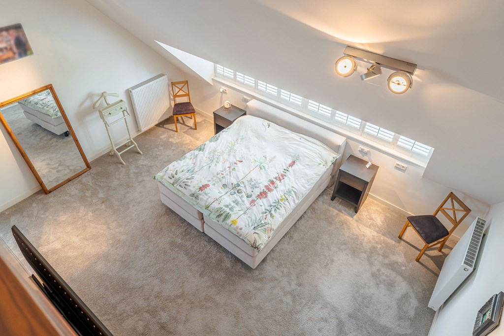 De zolderverdieping is in de huidige opzet gecompartimenteerd in twee ruimtes. Ideaal als grote opslagruimte maar door middel van een kleine aanpassing ook geschikt als bijvoorbeeld hobbykamer, werkkamer of sportruimte.