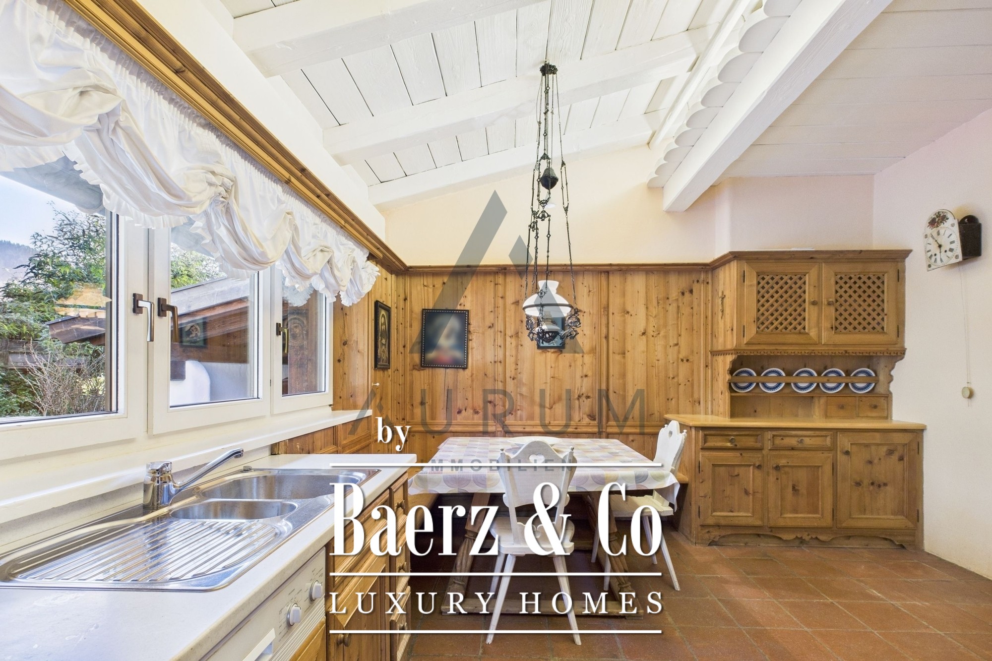 House Bad Häring stands as a refined example of classic Kranebitter architecture, set on a quiet 857 m² plot with an additional adjacent 434 m² building site. This house for sale in Bad Häring offers approximately 238 m² of total space, with 128 m² devoted to light-filled living areas and 73 m² as a generous basement, grouped with a 19 m² utility room and an 18 m² storage shed. The property lends itself equally well to extension or the potential for further development.