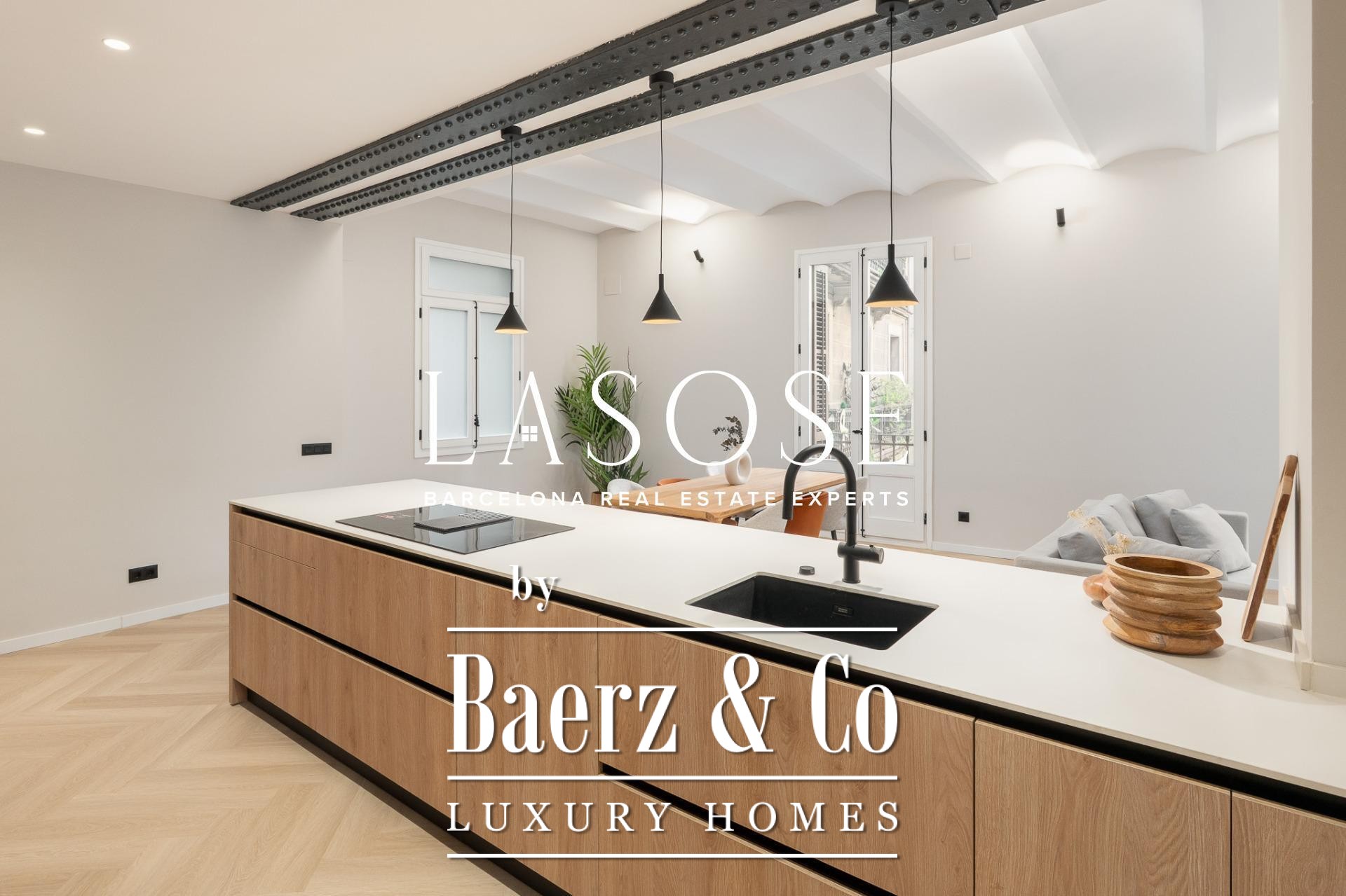 Apartment Barcelona blends the authenticity of a classic building with the refinement of meticulous renovation, positioned in the city’s historic center near the Cathedral and the Palau de la Música. This apartment, offering 140 m² of built space and a living area of 119.72 m², exemplifies thoughtful restoration using high quality materials while preserving timeless features such as the Catalan vault and wooden shutters.