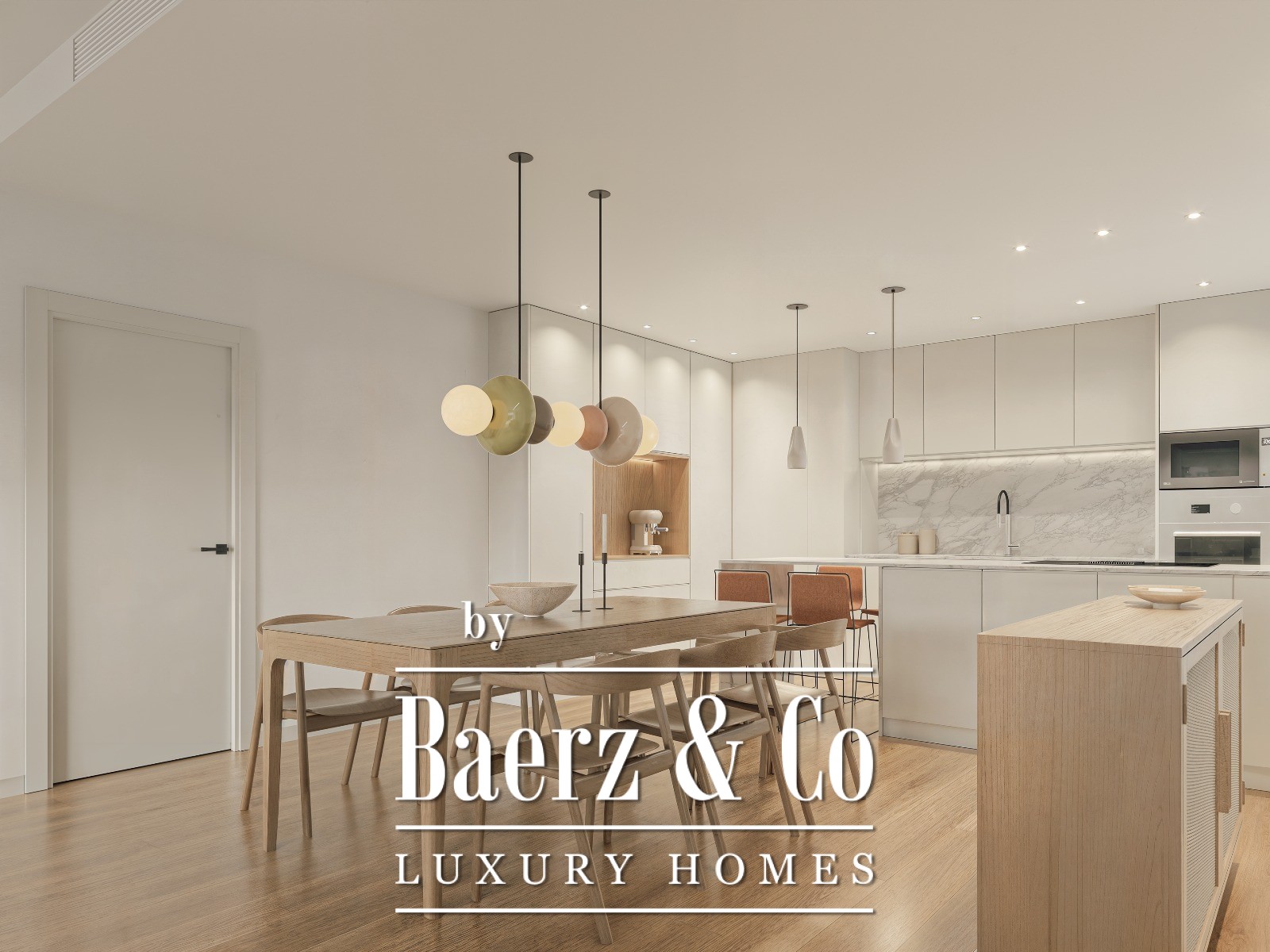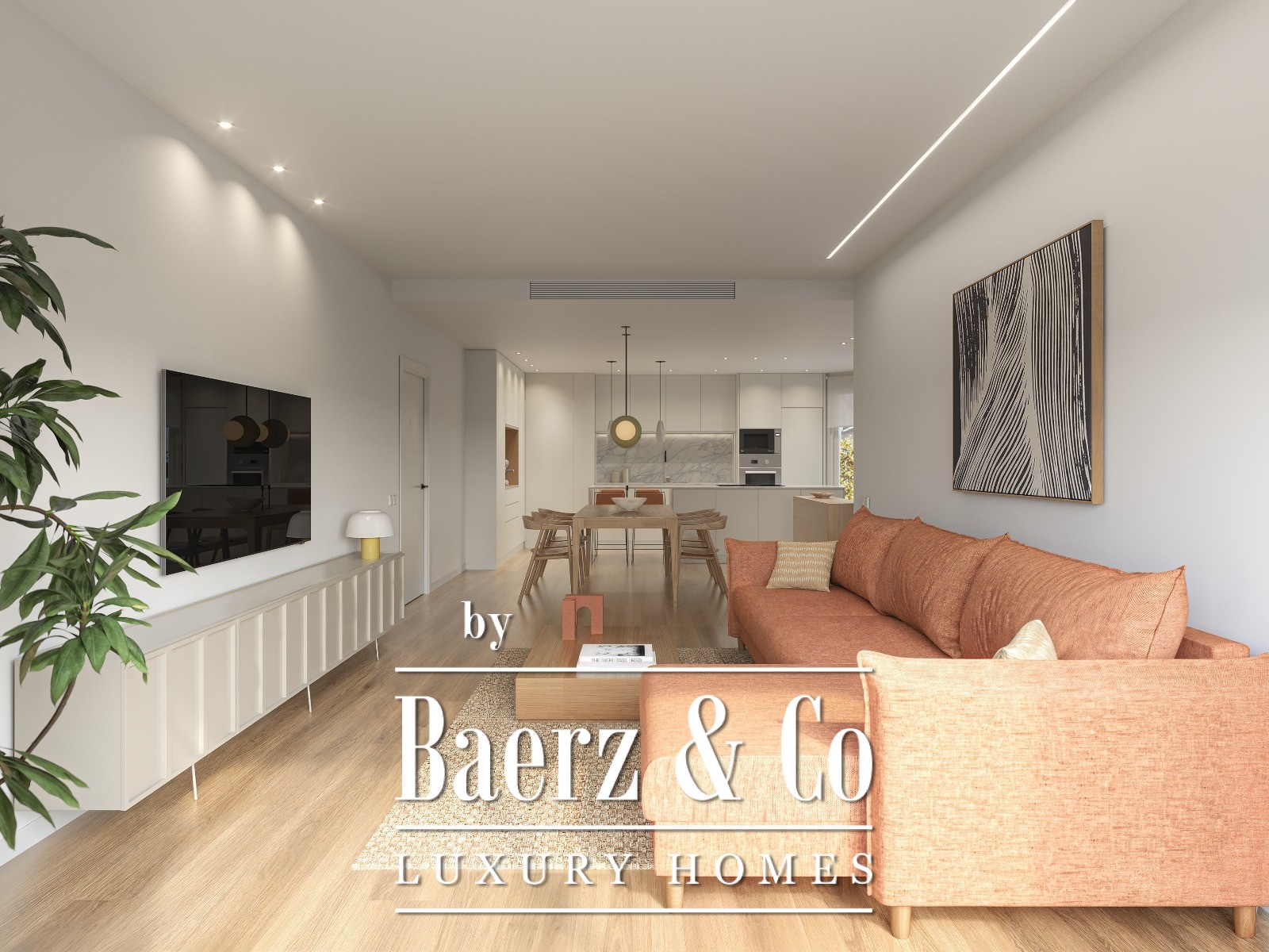 The practical and versatile layout allows for three or four bedrooms, adapting to different lifestyles. The spacious and open living area integrates a designer kitchen with the living-dining room, from which there is direct access to the garden, becoming the heart of the home.