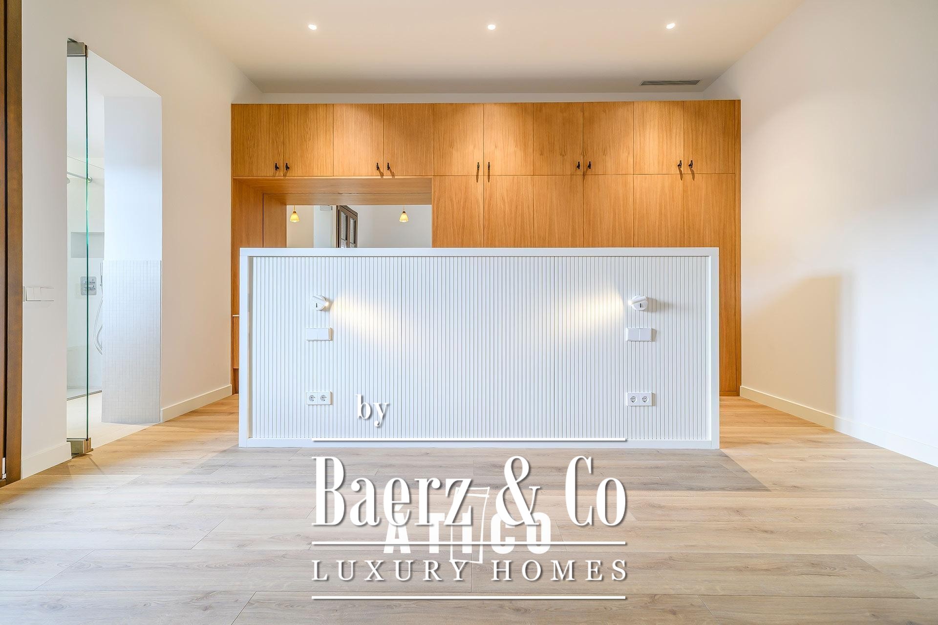 This duplex apartment Barcelona stands as a testament to refined urban living, offering 212.51 m² of newly renovated space across two distinct floors. Designed with flexibility in mind, its independent entrances provide options for privacy, work, or hospitality, allowing seamless transitions between day and night zones or dual-purpose living. Upon entry, a modern staircase defines the interior, lending the home a confident architectural rhythm and connecting both levels.