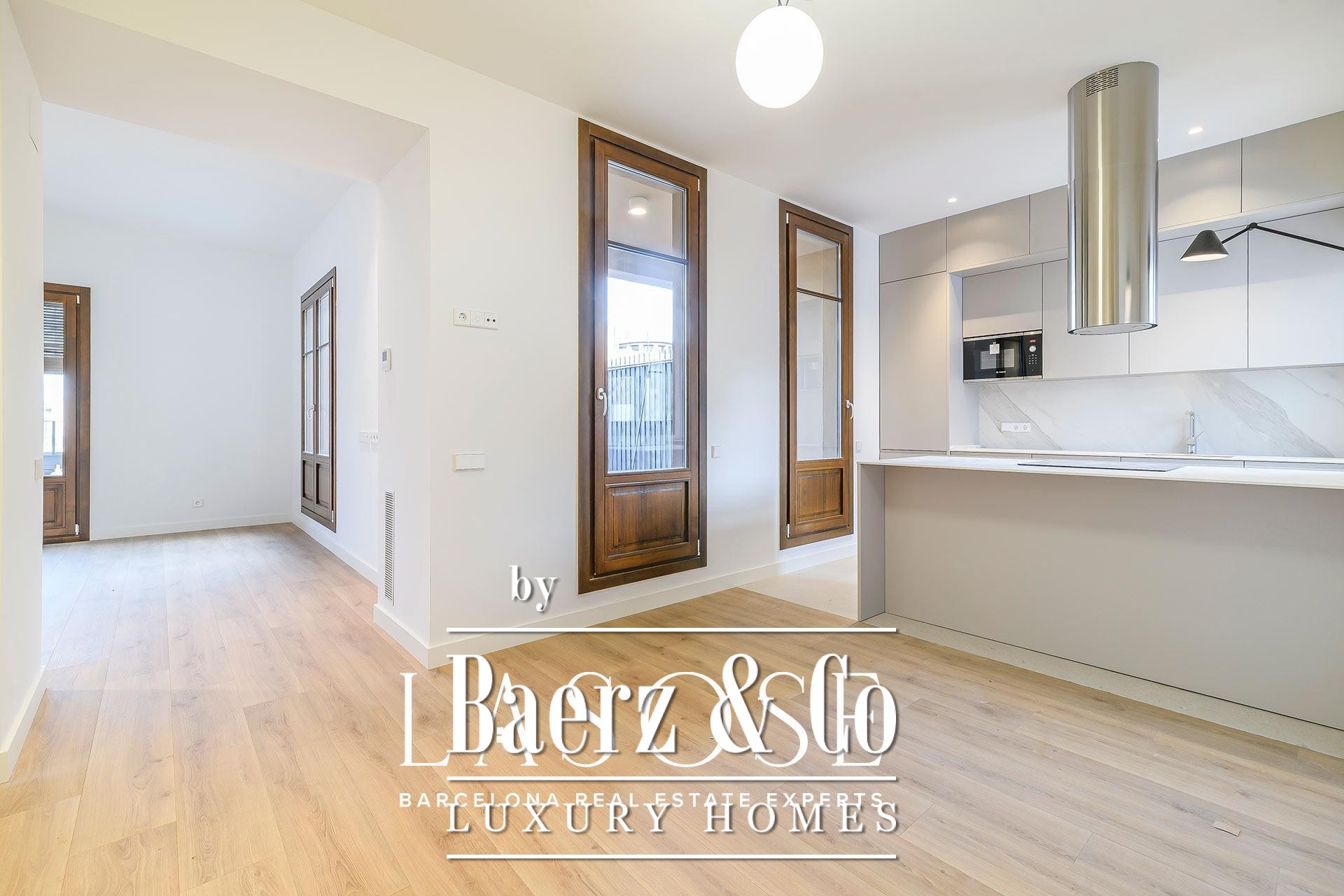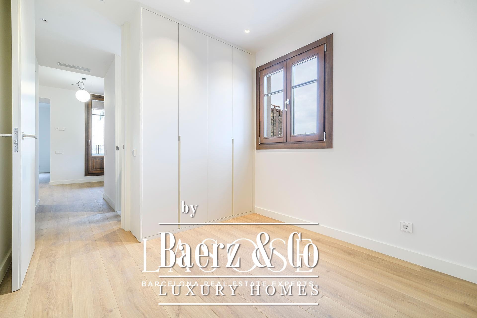 Each residence has been meticulously refurbished throughout its 110 m², curating a distinct sense of space highlighted by impressively high ceilings and an abundance of natural light. The refined layouts include two bedrooms and two bathrooms, elevating functionality and comfort, while state-of-the-art finishes and high-performance enclosures ensure lasting tranquillity. Private terraces open to immersive Eixample views, offering a rare urban retreat suited to the Mediterranean climate.