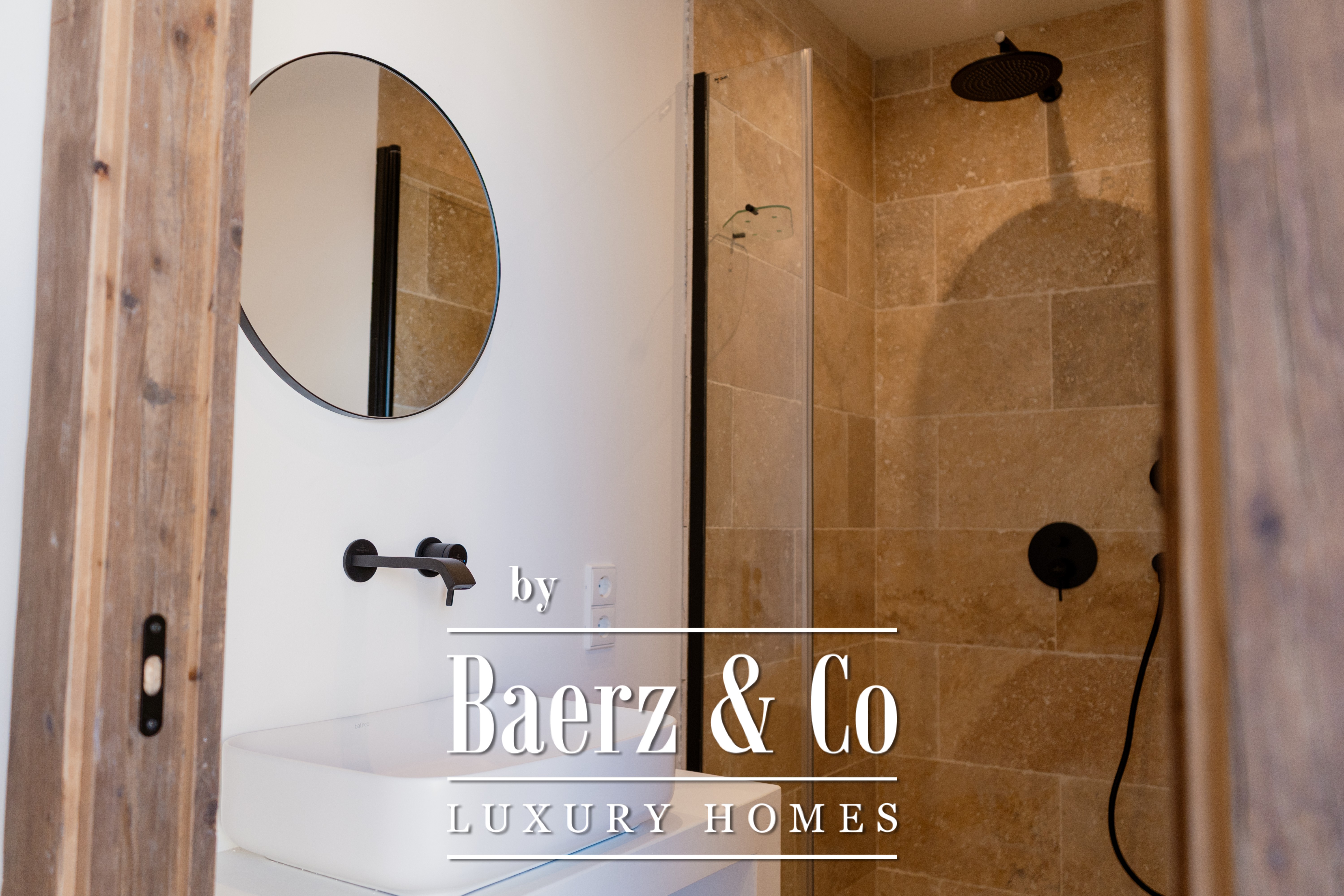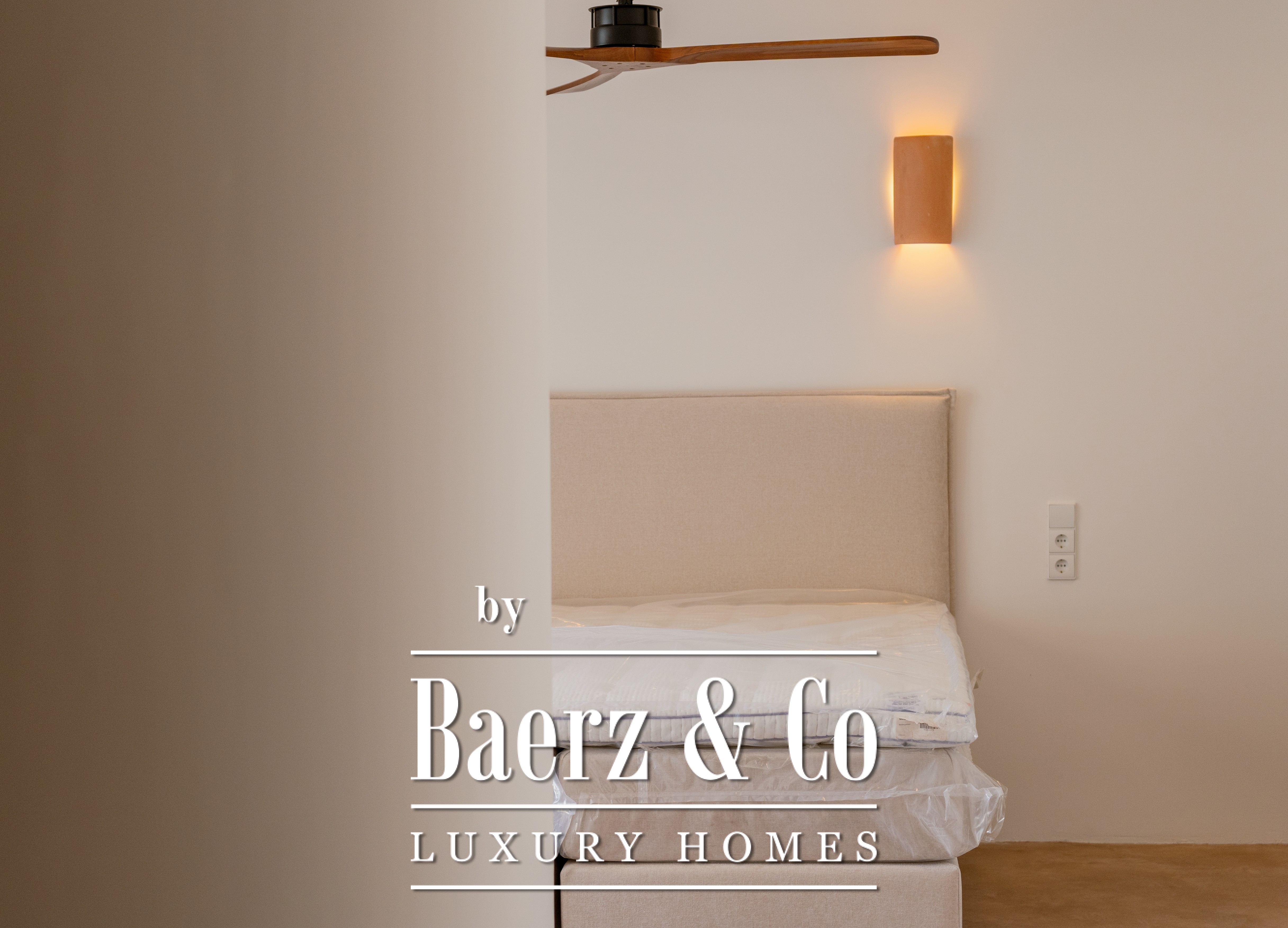 The lower floor offers two spacious bedrooms, each with its own en-suite bathroom and access to a private terrace, as well as an outdoor kitchen with BBQ. A versatile space on this level will be fully customized to the buyer’s wishes, with possibilities for extra bedrooms, a gym, wellness area, or garage.