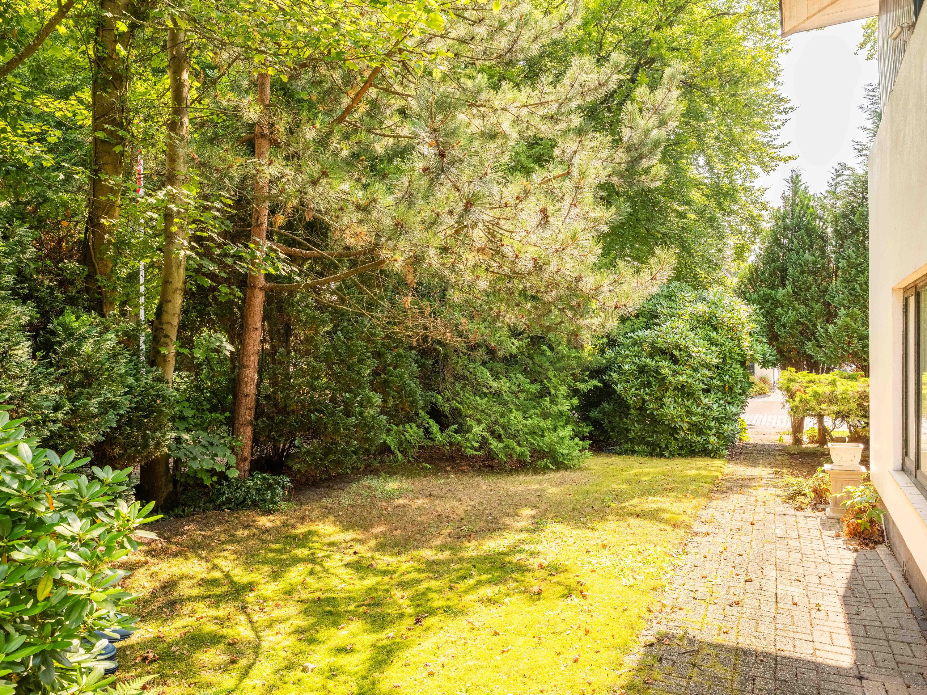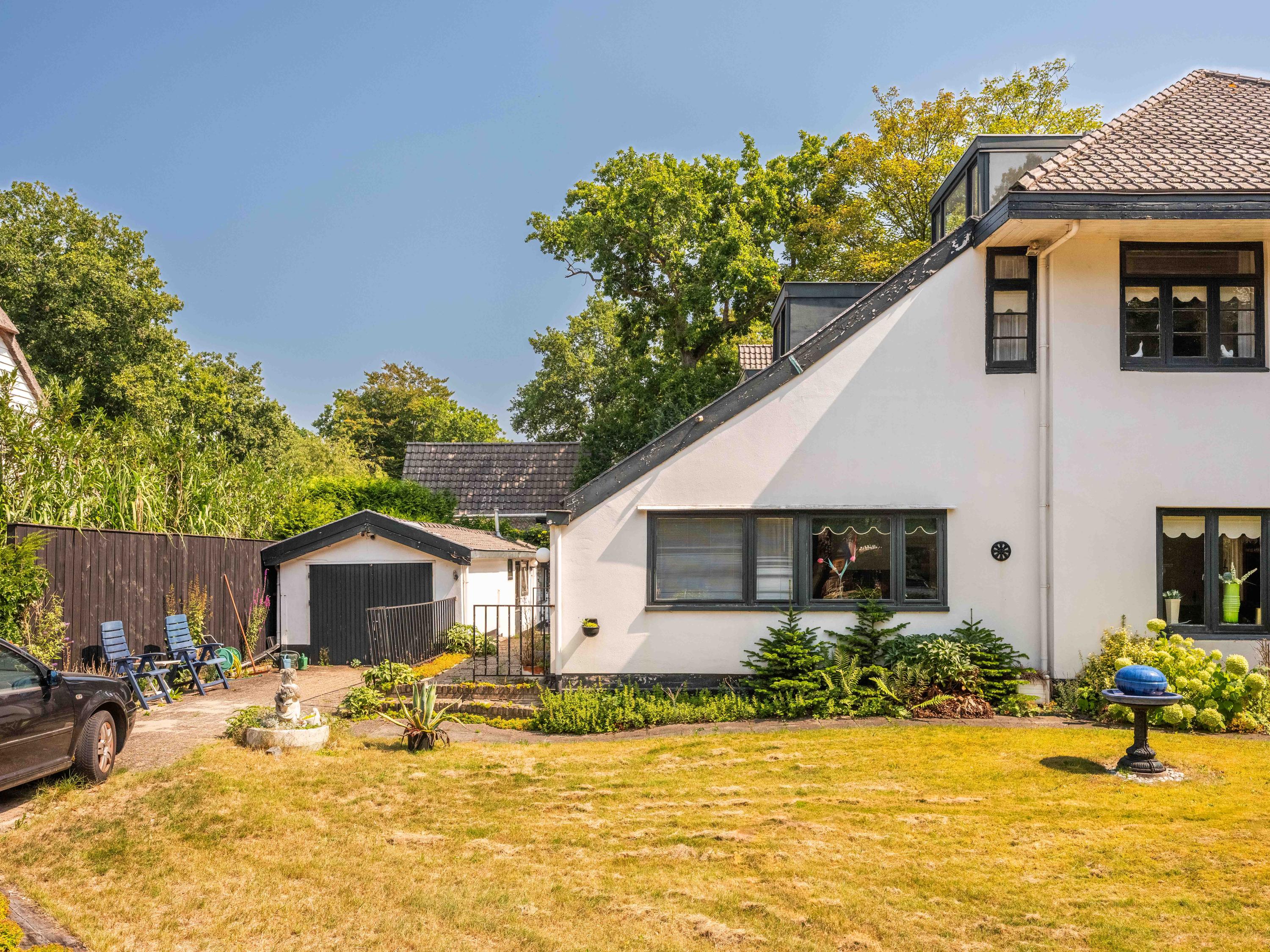 The driveway gives access to the plot. Here you will also find a large detached garage. Plenty of room for cars on private property. The villa is located on a spacious plot with beautifully landscaped trees and bushes all around.