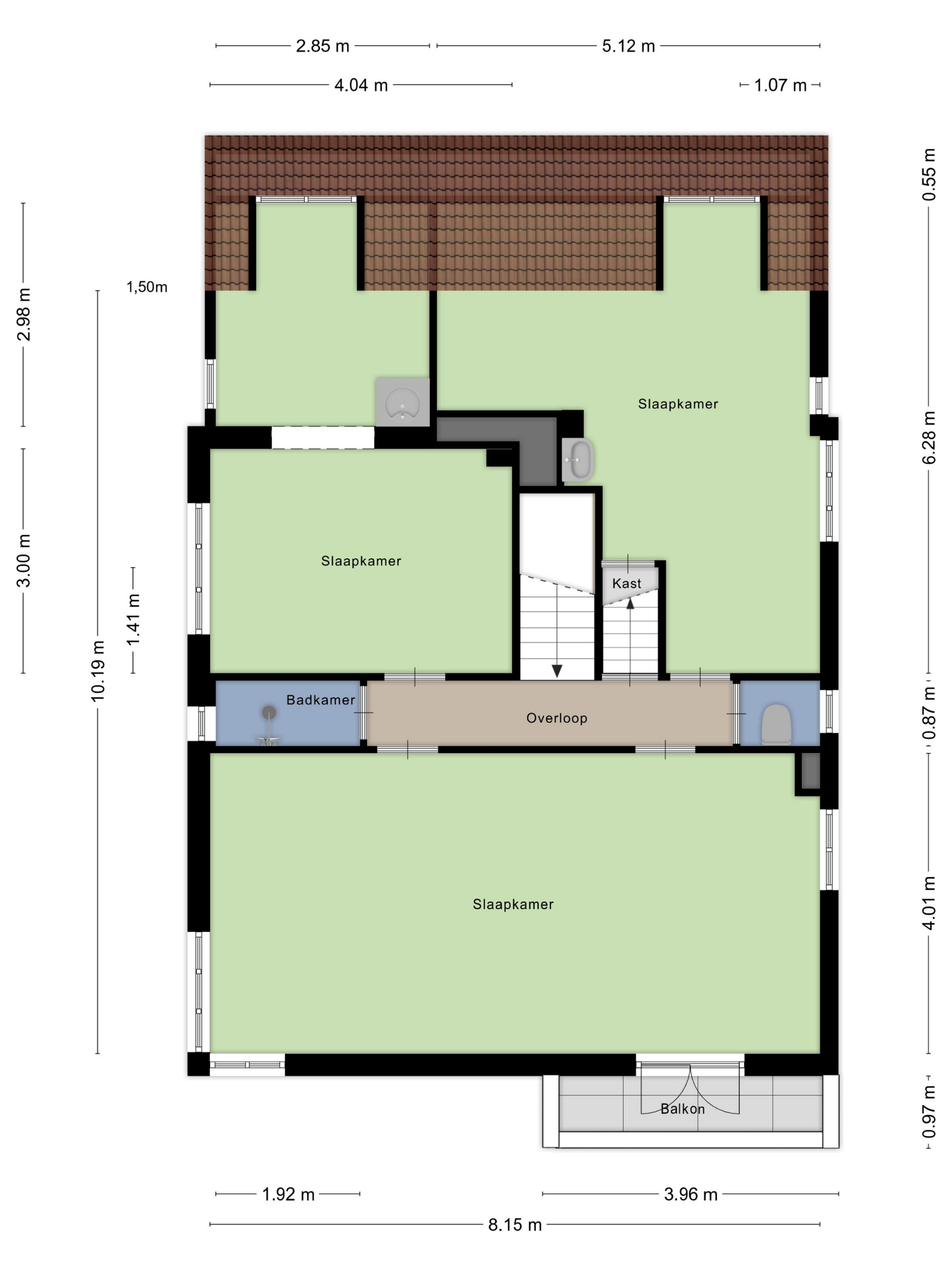 A fixed staircase leads to the 1st floor. Here a landing to the 3 bedrooms, shower and toilet. A steep staircase to the attic floor takes us to a spacious room with dormer window and storage space behind the knee walls.