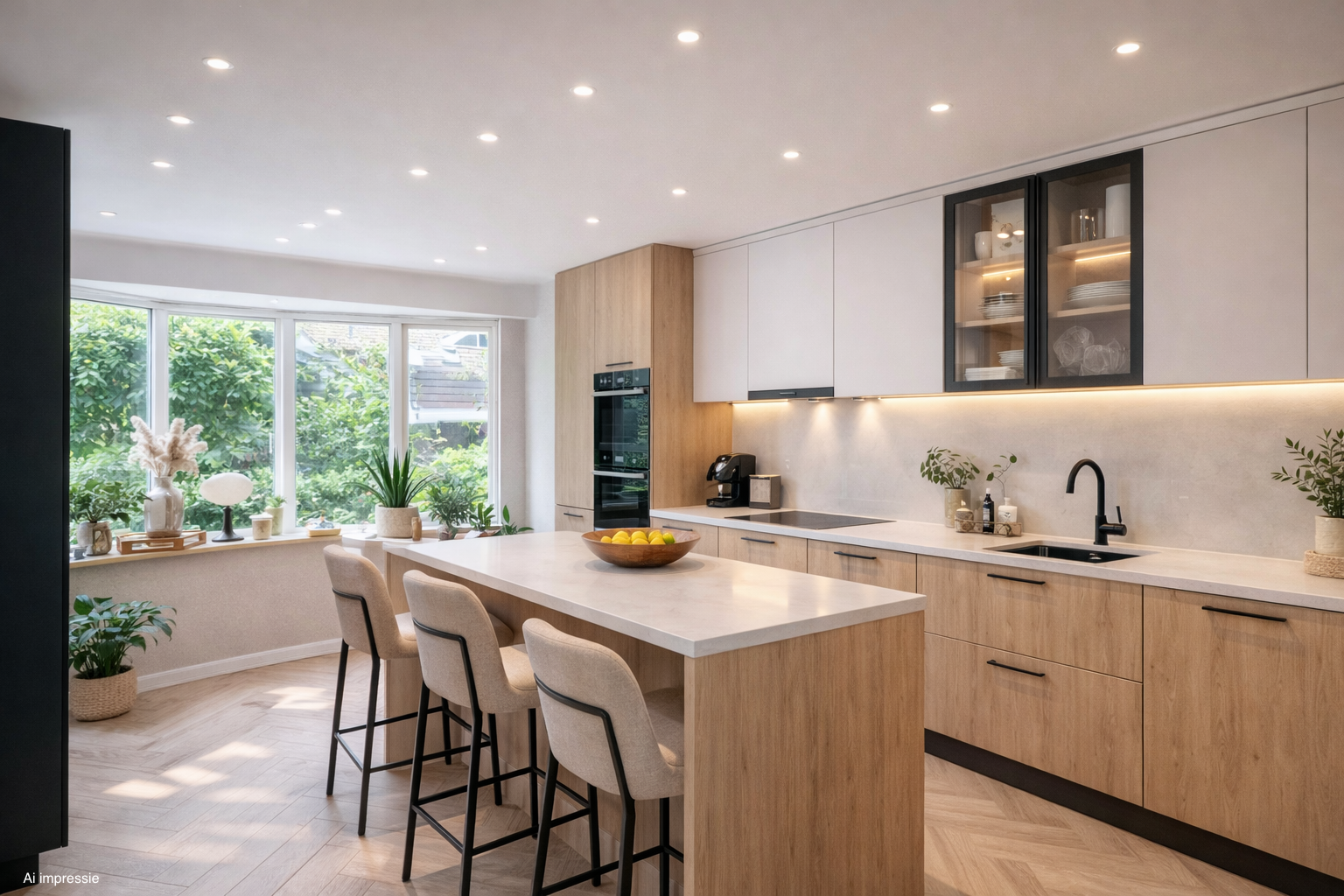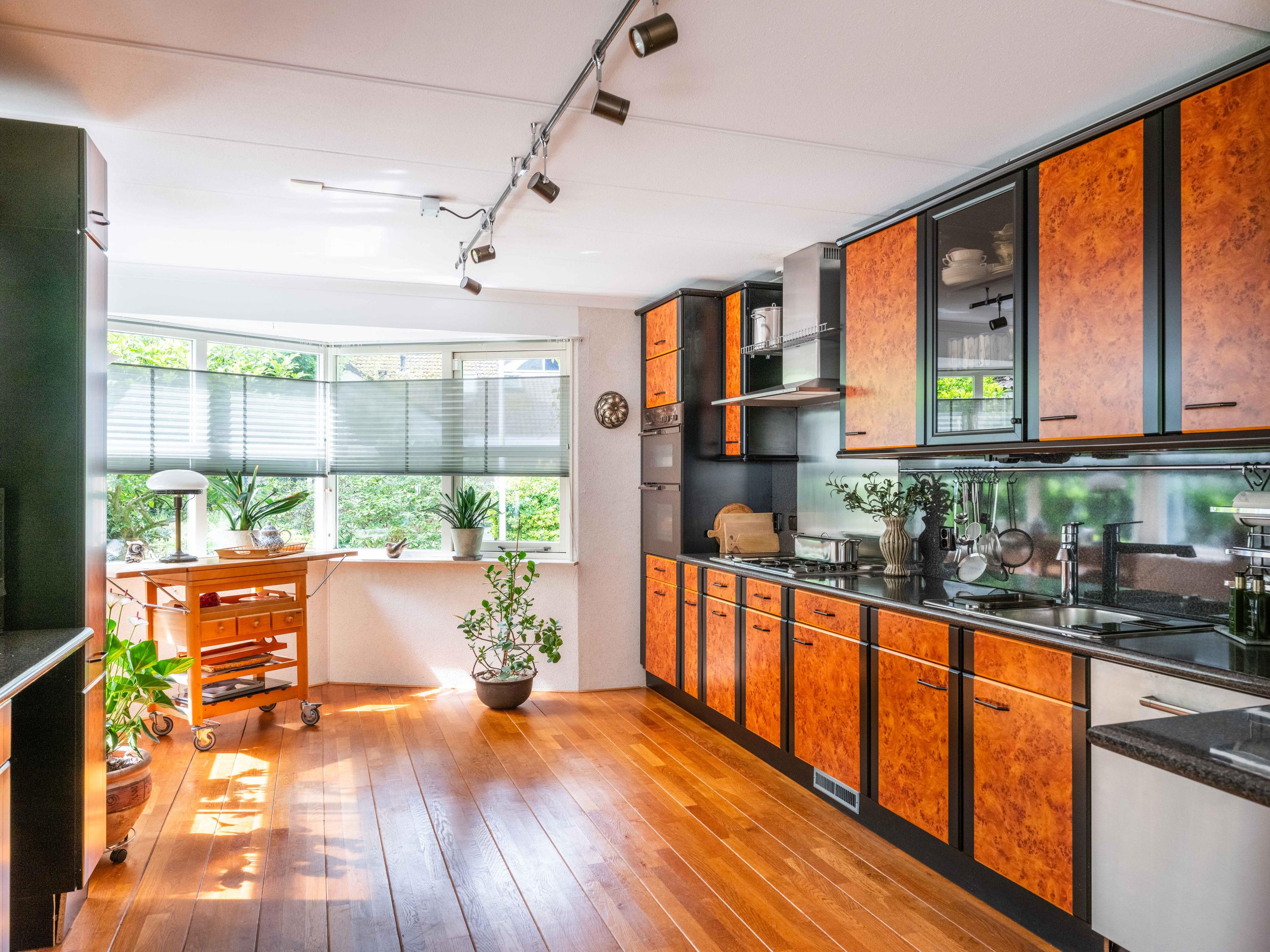 We would be happy to show you around. Upon entering, you will find a spacious entrance hall with a cloakroom, toilet, and meter cupboard. The layout of this home is playful and contemporary, with a cozy garden-facing sitting area with a separate dining area. The kitchen is located at the front and offers plenty of storage space and various built-in appliances. Ideal for both relaxing evenings and cozy family moments.