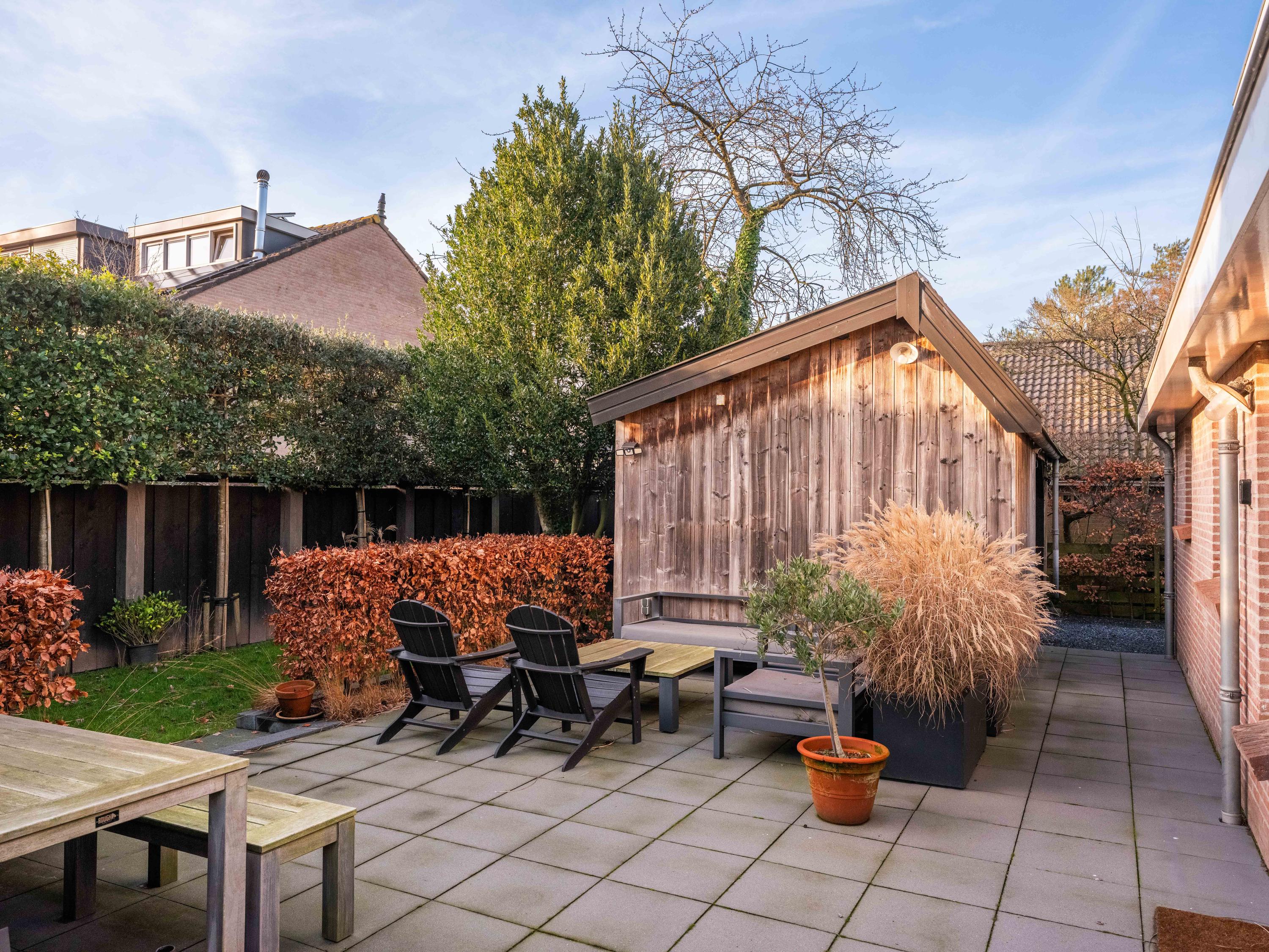Upon entering, you immediately notice the pleasant atmosphere. The spacious hall with staircase and modern toilet provides access to the practical utility room and leads further to the dining room with fireplace. From here, double garden doors open onto the beautifully landscaped garden, allowing the indoors and outdoors to flow effortlessly into one another. The living room connects seamlessly to the designer kitchen by Piet Jan van den Kommer—a real eye-catcher that perfectly matches the country style of the house. The wooden floors and beamed ceilings enhance the feeling of warmth and character.