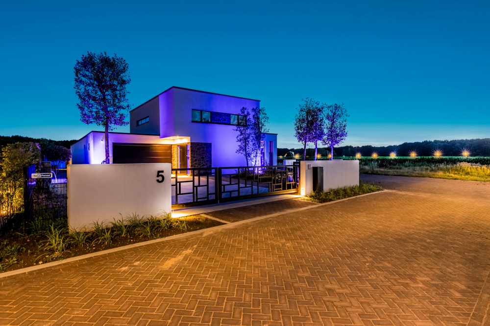 Secured with an electric double designer gate. The design elements of the gate are reflected throughout the property.