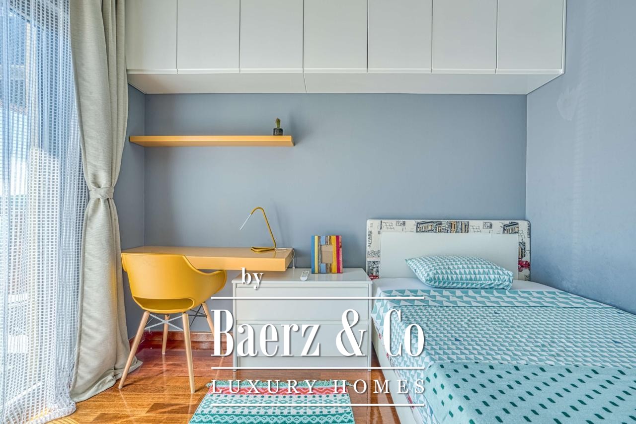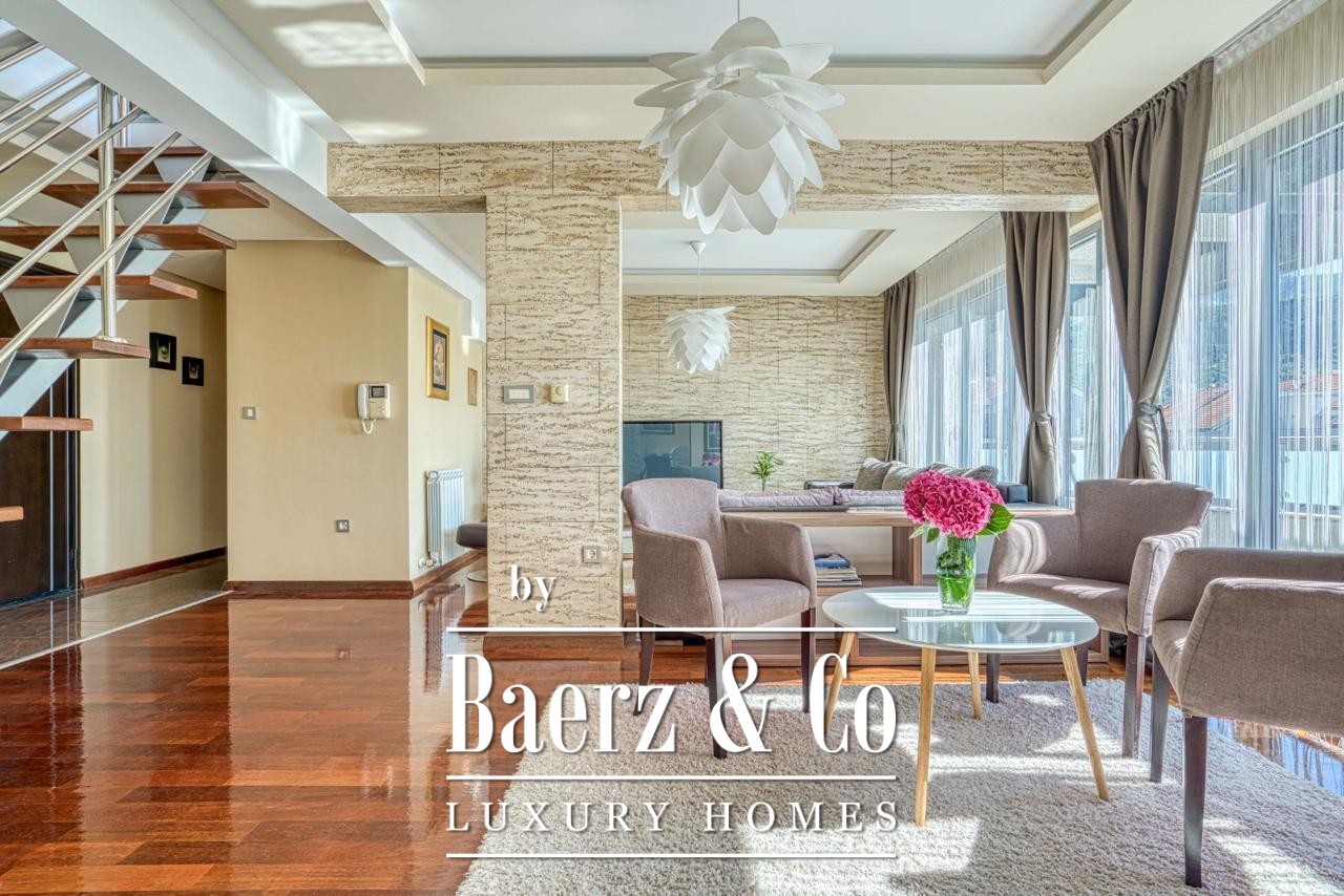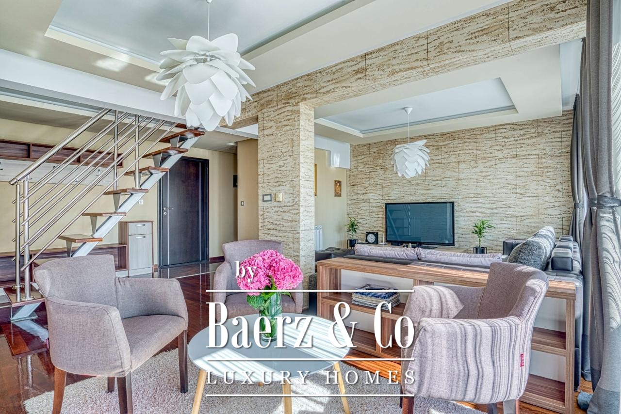Occupying the top two floors of a contemporary seven-story building, the 188 m² penthouse offers privacy and unobstructed sea and mountain views. A designated garage space in the building’s basement connects directly by elevator, delivering security and discretion in daily arrivals.