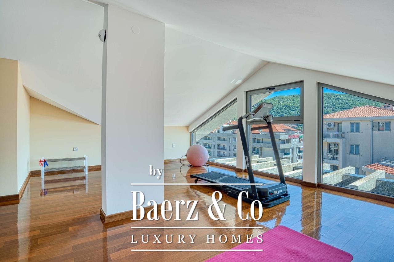 The penthouse Budva is situated just 800 meters from the city center and 1.5 kilometers from the Adriatic shore, bringing both urban rhythm and the serenity of the coastline within easy reach. International access is seamless, with Tivat Airport 19 kilometers away and Podgorica Airport at 59 kilometers. Within walking distance, discover boutiques, restaurants, groceries, schools, and the city mall, ensuring comfort for year-round living or long-term letting.