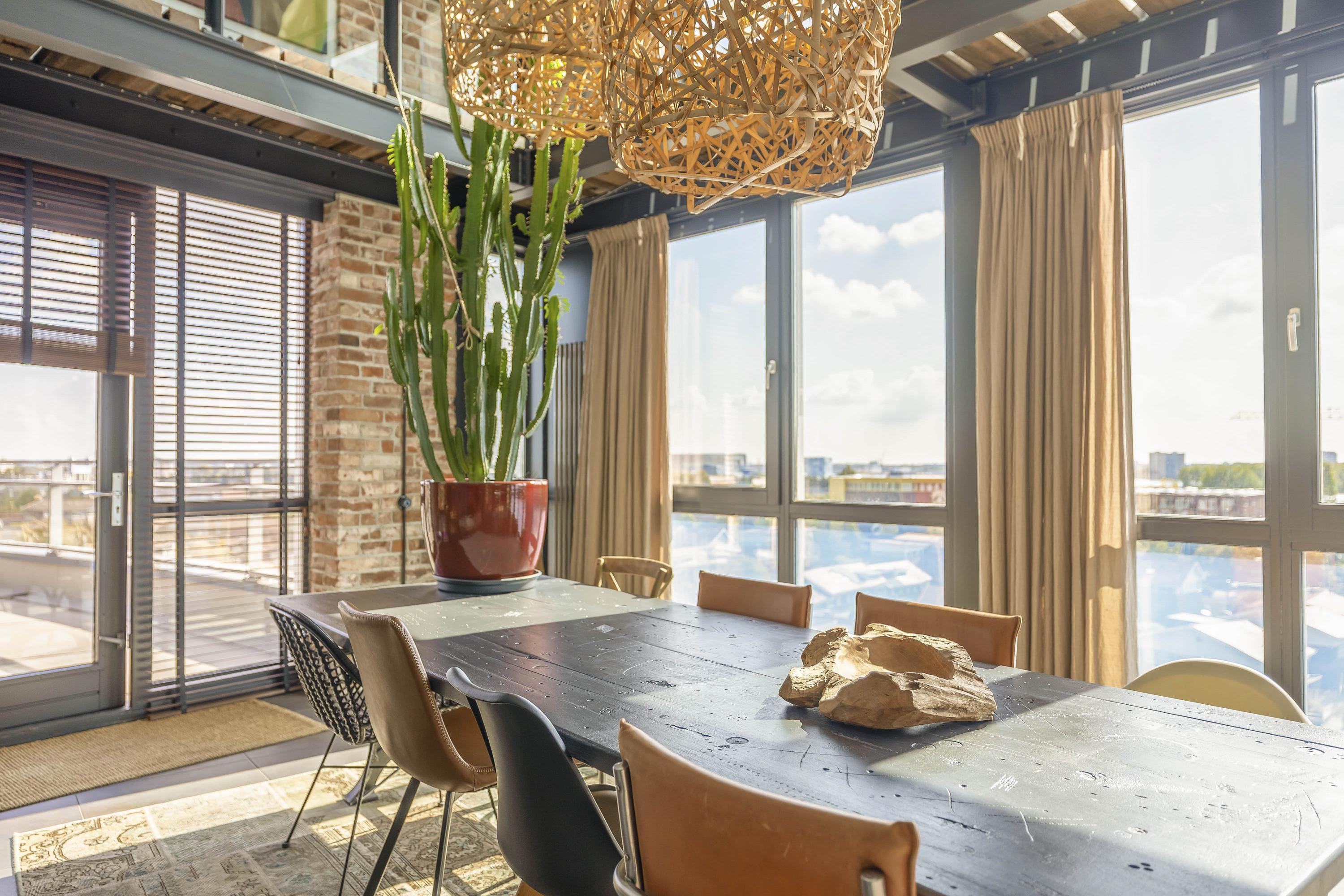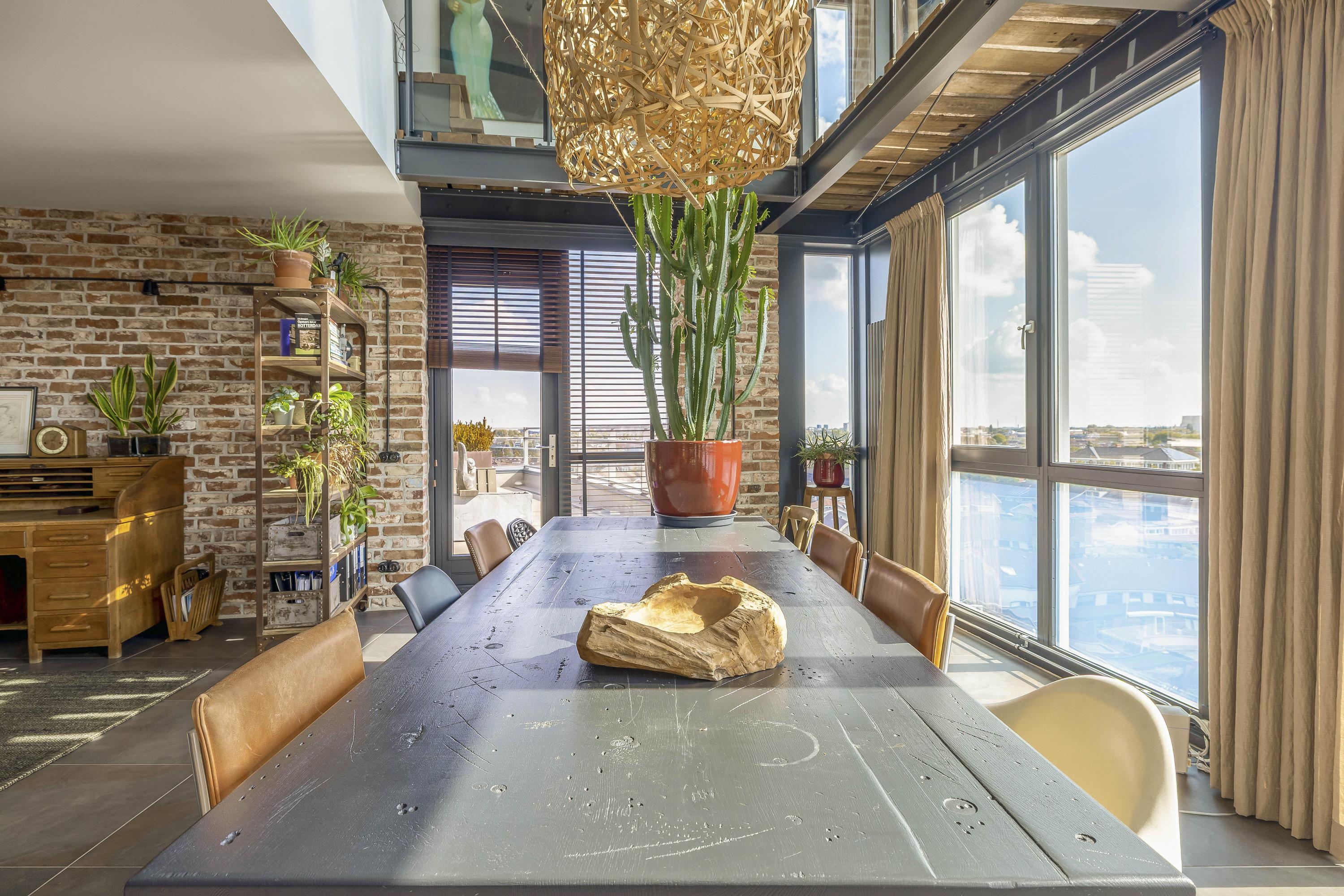 Living at a higher level takes on a whole new meaning here. This double penthouse on the 8th and 9th floors offers a whopping 251 m² of living space, making it a rare and exceptionally spacious city apartment. Everything about this home exudes comfort, luxury, and privacy. With no direct neighbours, you’ll enjoy peace, quiet, and total freedom. The panoramic windows offer breathtaking views of the Rotterdam skyline, the Brienenoord Bridge, and the lights of De Kuip – a view that never gets old. And it continues seamlessly into the outdoor space: spread across two levels, you have a total of 98 m² of roof terraces, ideally positioned to the southeast and southwest. That means: morning sun and evening sun with stunning sunsets.