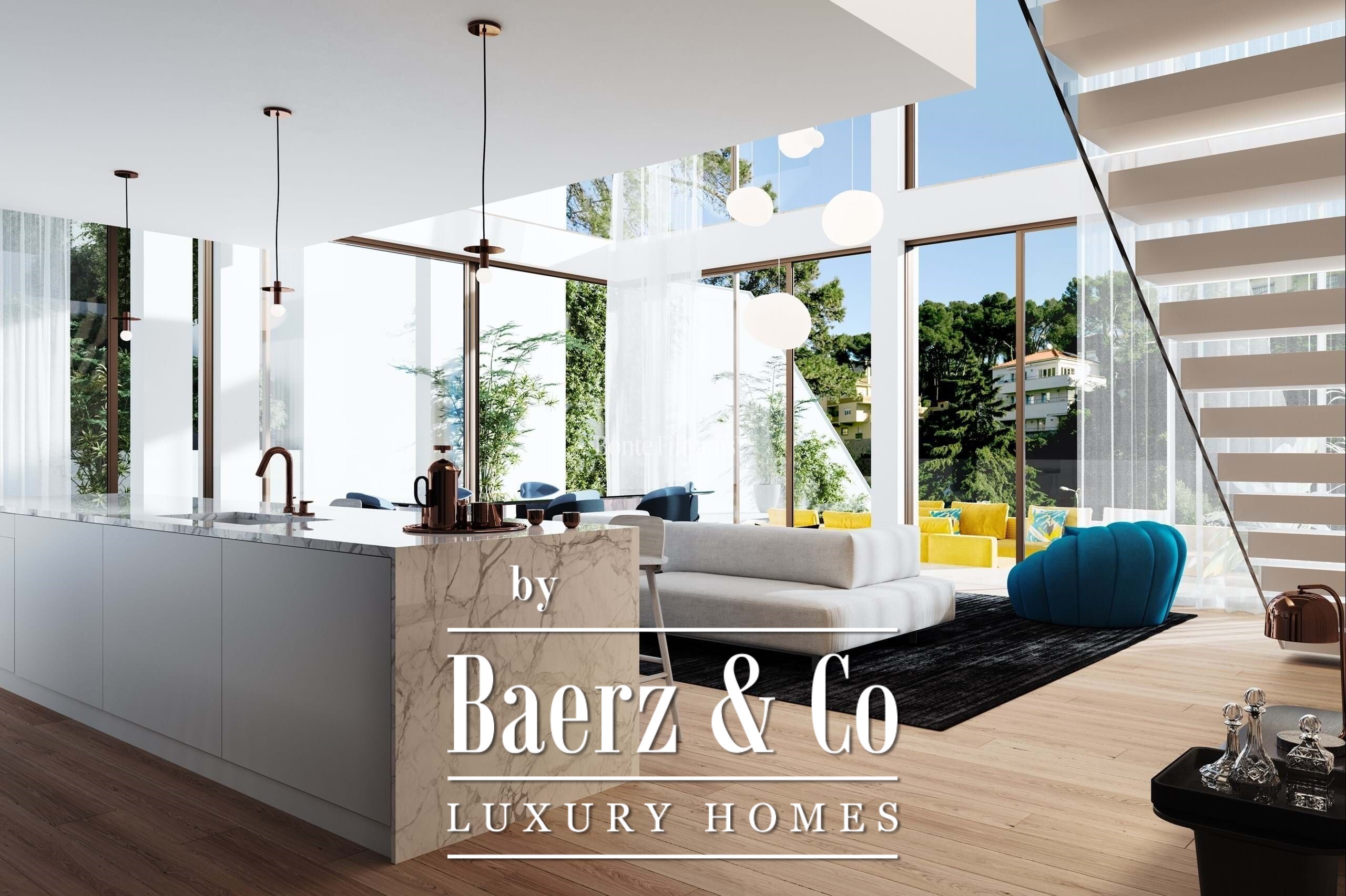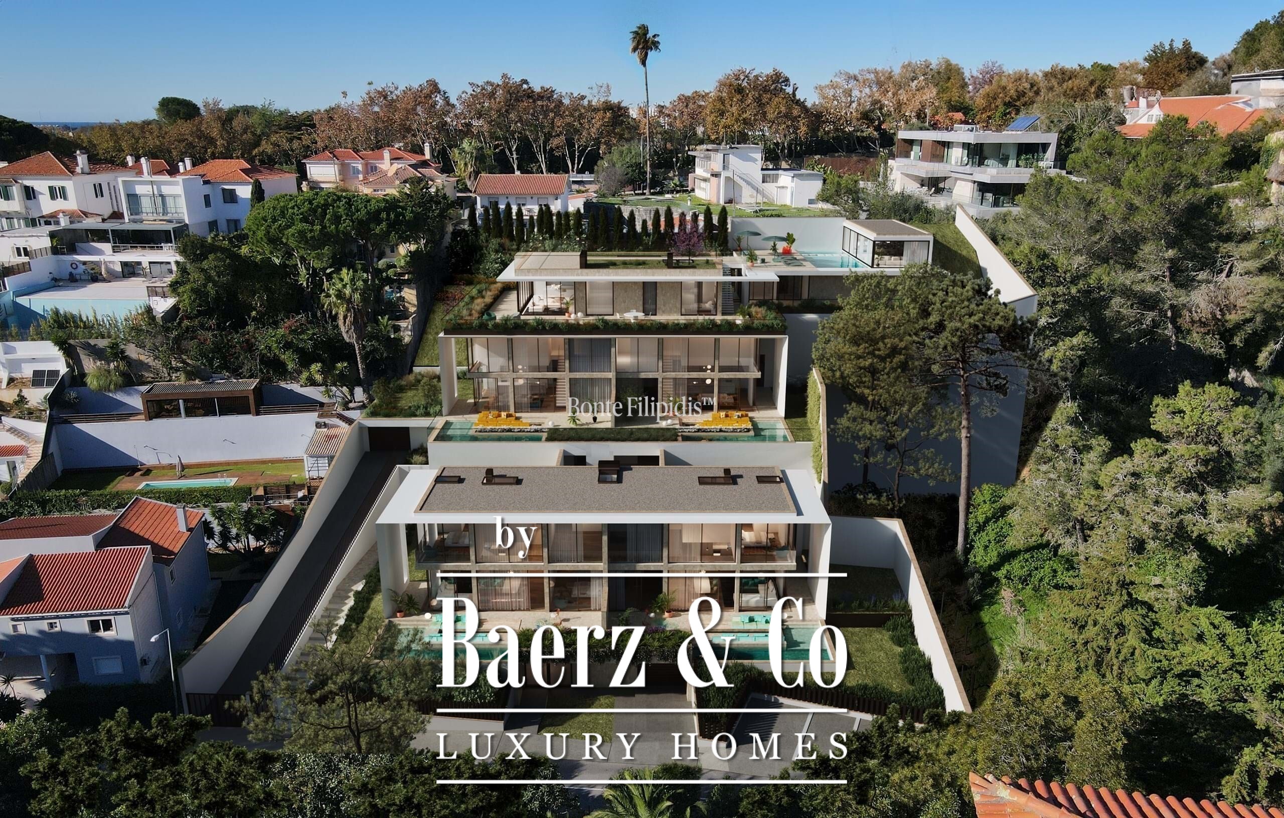 Duplex villa Cascais e Estoril presents a restrained balance of design and functionality, situated in the sought-after Alto Estoril enclave. This property offers 543 m² of indoor living area, five bedrooms, and five bathrooms, quietly enveloped by landscaped gardens and a private swimming pool. Light filters in through generous glazed surfaces, lending a rhythm of openness to the two-level residence, while marble flooring, underfloor bathroom heating, and integrated home automation offer discreet comfort throughout.