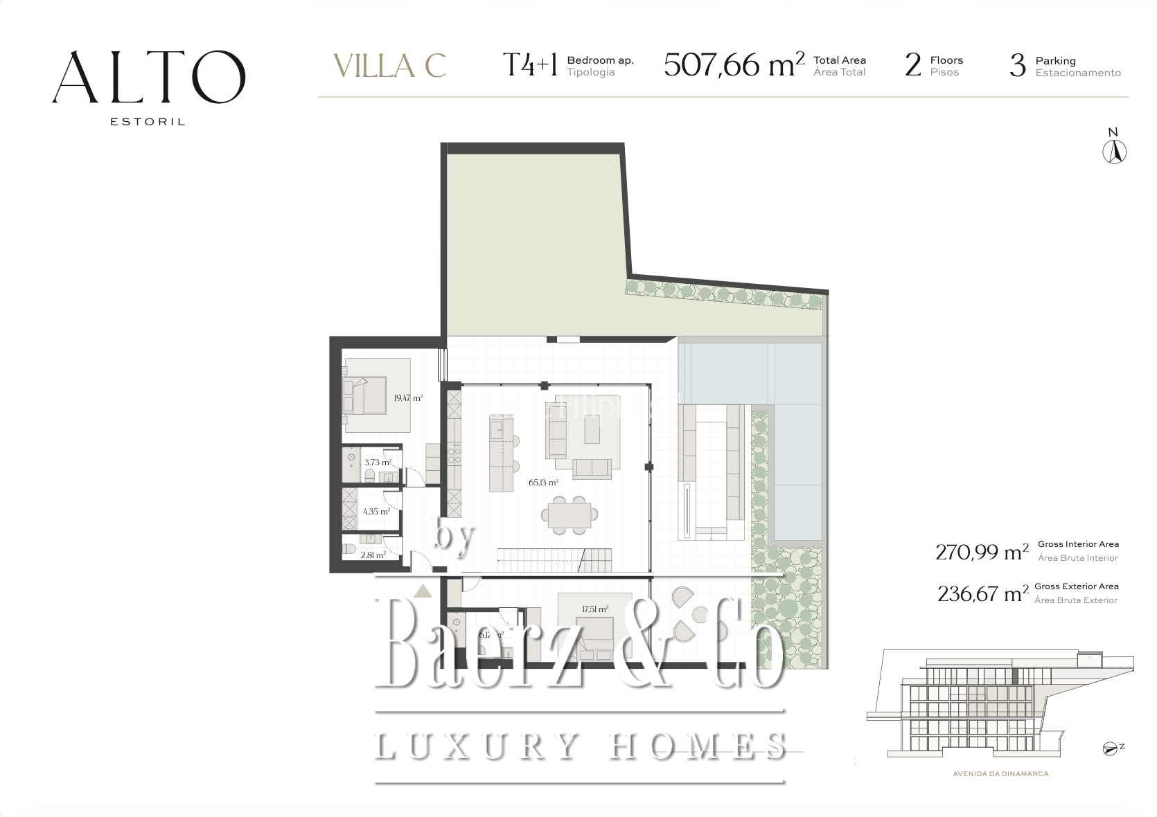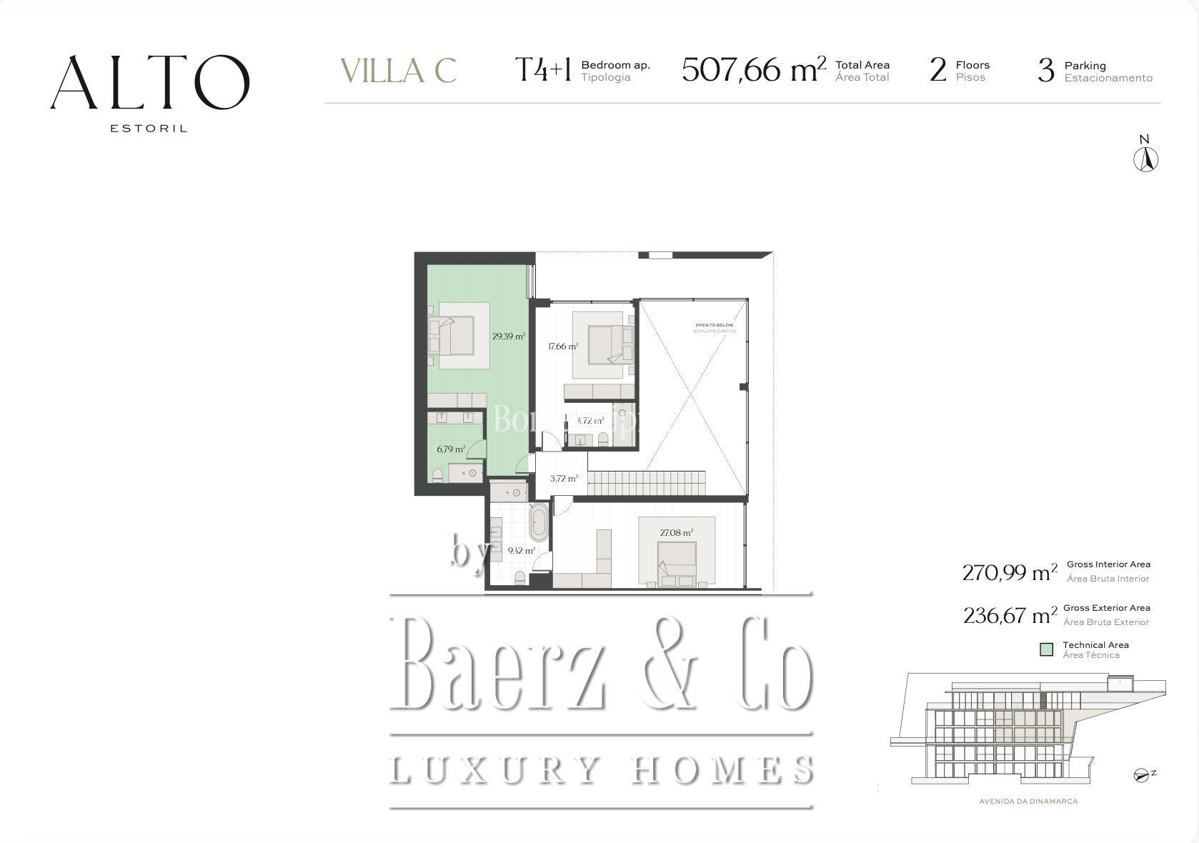 Everyday essentials and moments of leisure are moments away, with the beaches, Estoril Golf Club, and acclaimed schools within immediate reach. Restaurants, shops, and healthcare are nearby, and central Lisbon is a short 25-minute drive. This duplex villa in Cascais e Estoril represents an understated retreat where architectural clarity and local calm converge.