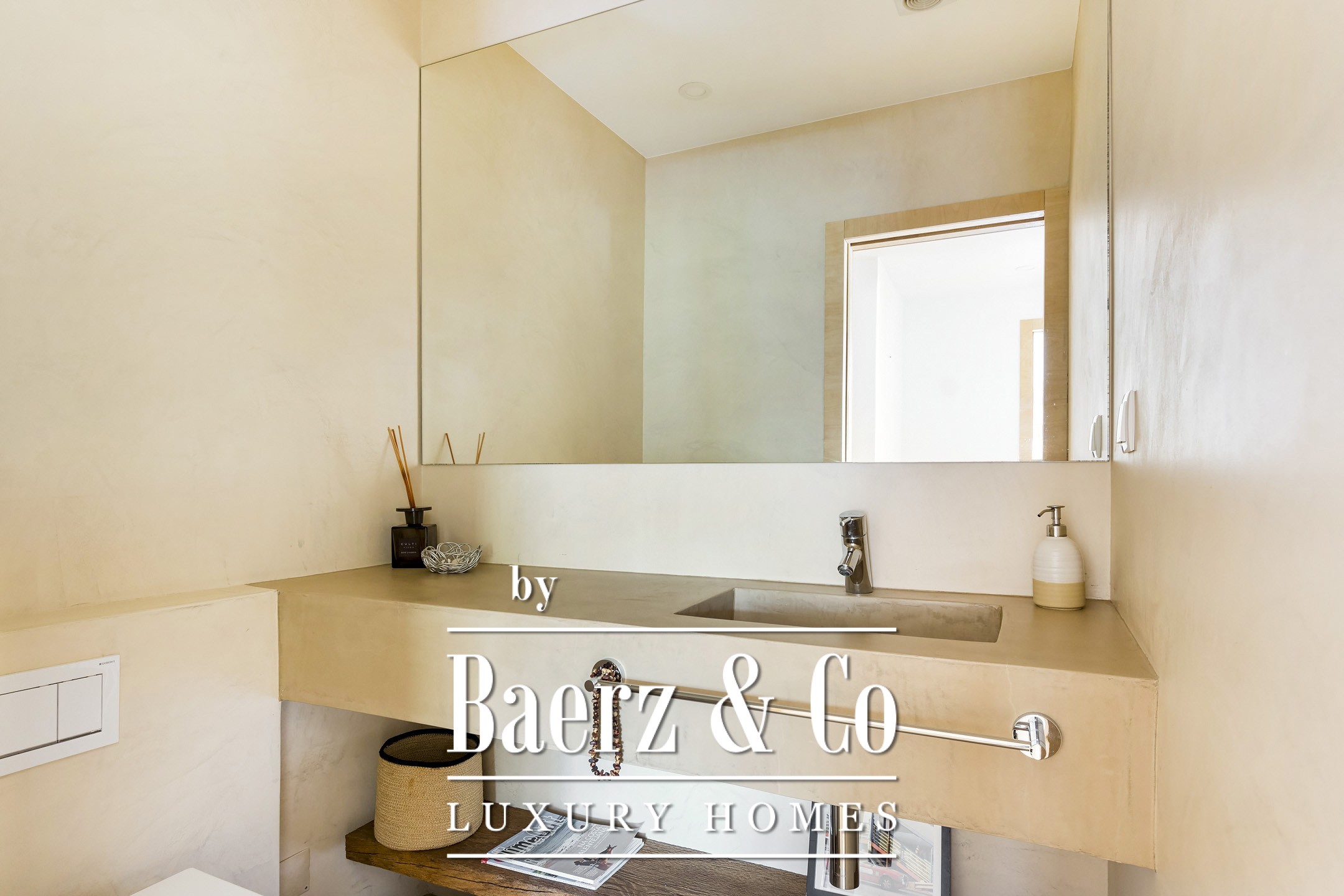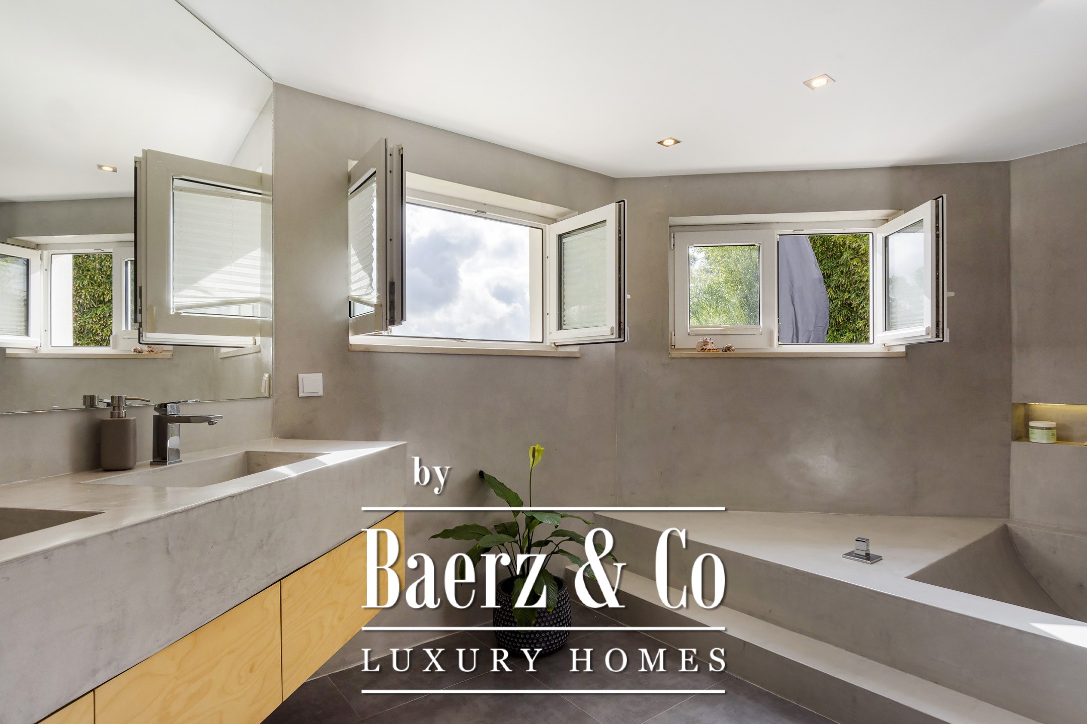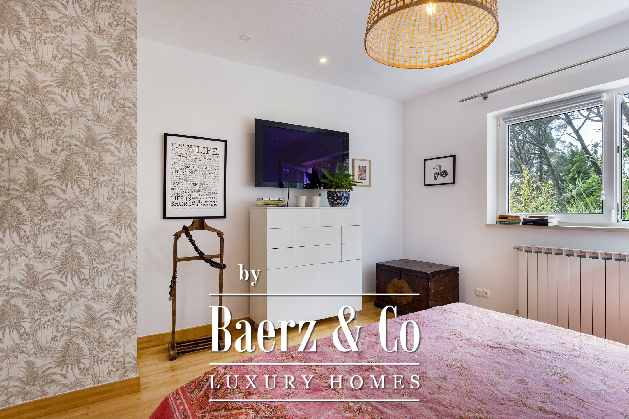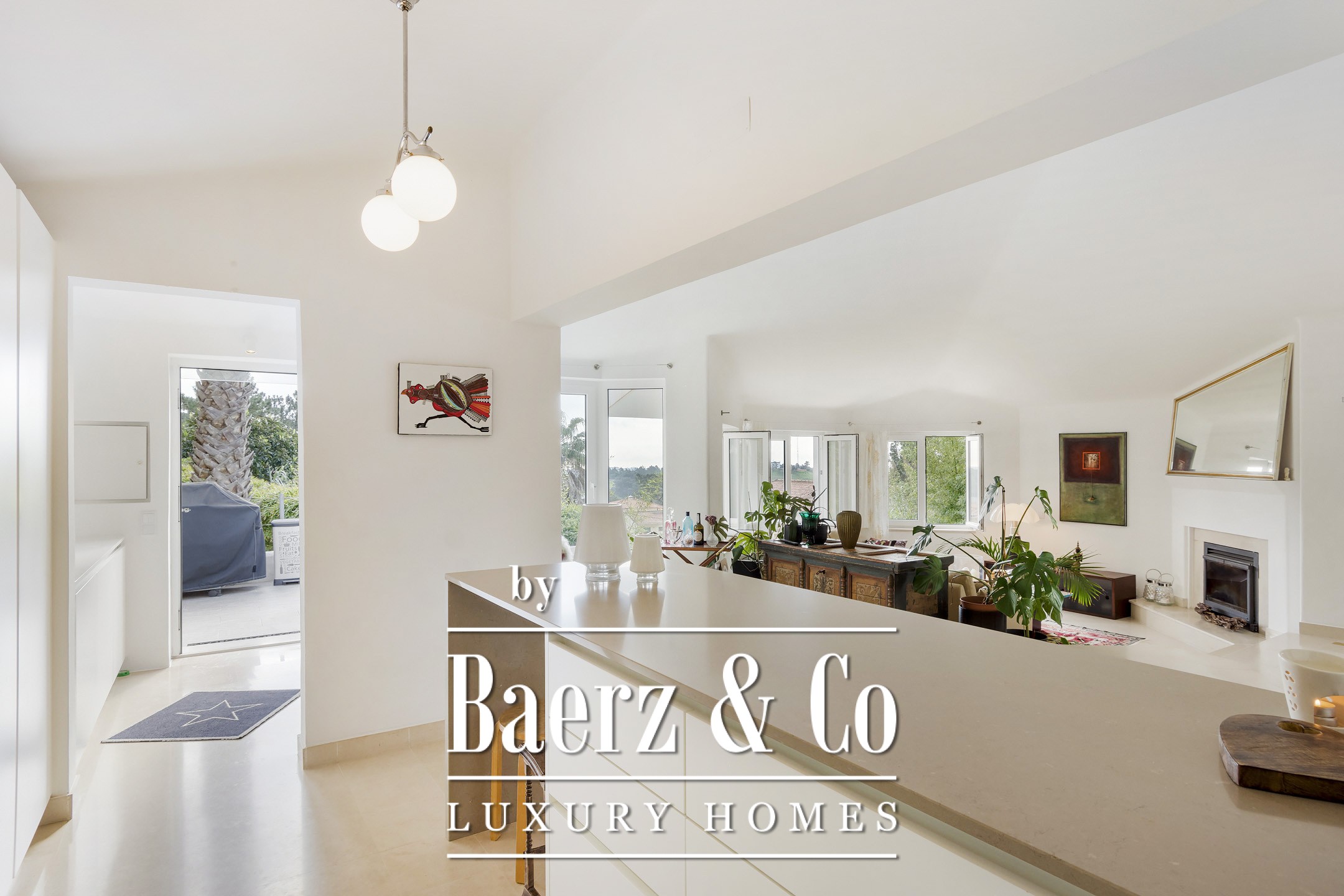 Sea View Villa Cascais presents a refined living experience on 305 m² of elegantly arranged space, set within a generous 1,206 m² plot in Malveira da Serra. This five-bedroom home is shaped by split levels and thoughtful architecture, with bamboo flooring, remodeled bathrooms, and an open kitchen featuring Kuppersbush appliances and premium finishes. Throughout, natural light infuses each room, highlighting the sophisticated clarity of the materials and spatial rhythm.