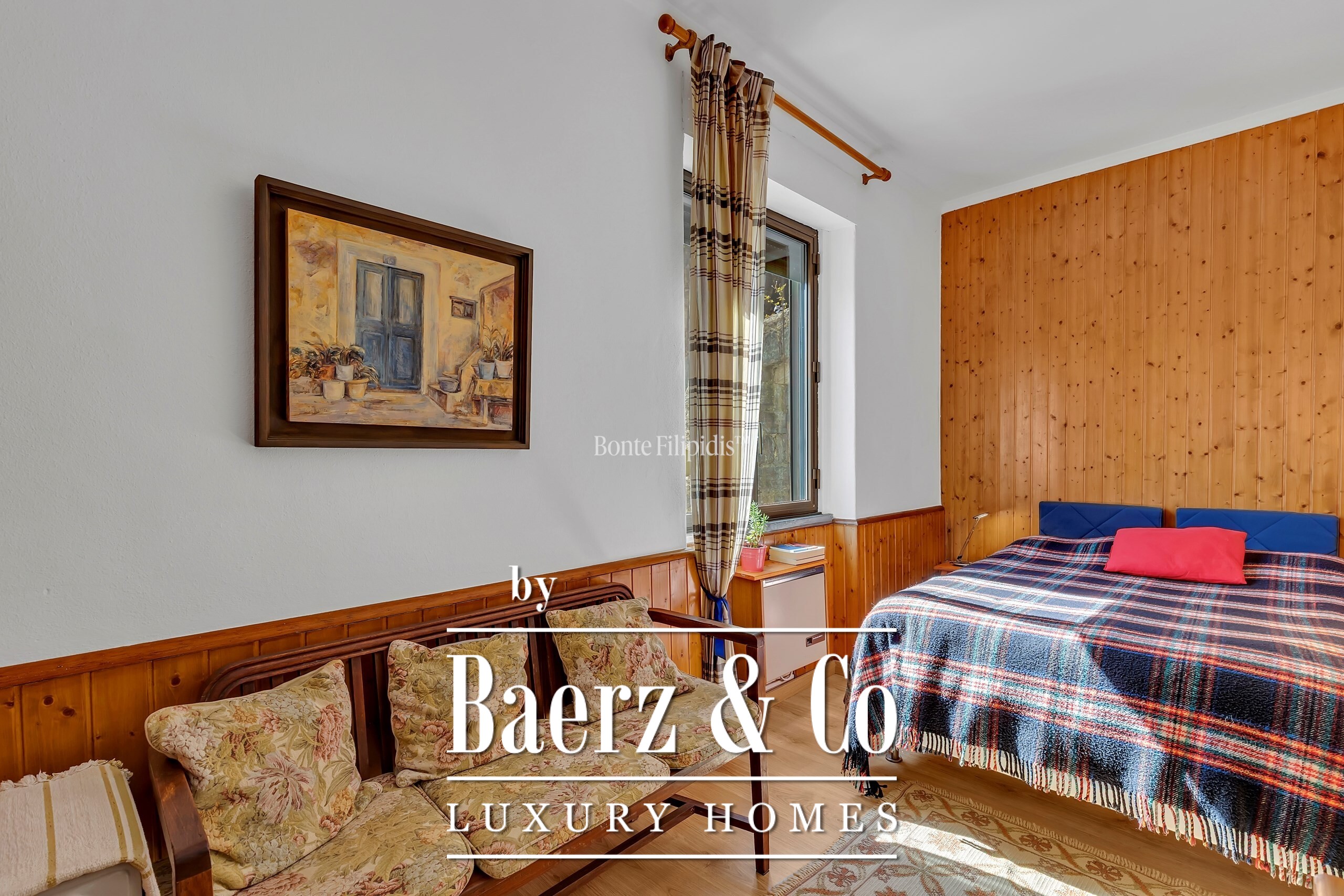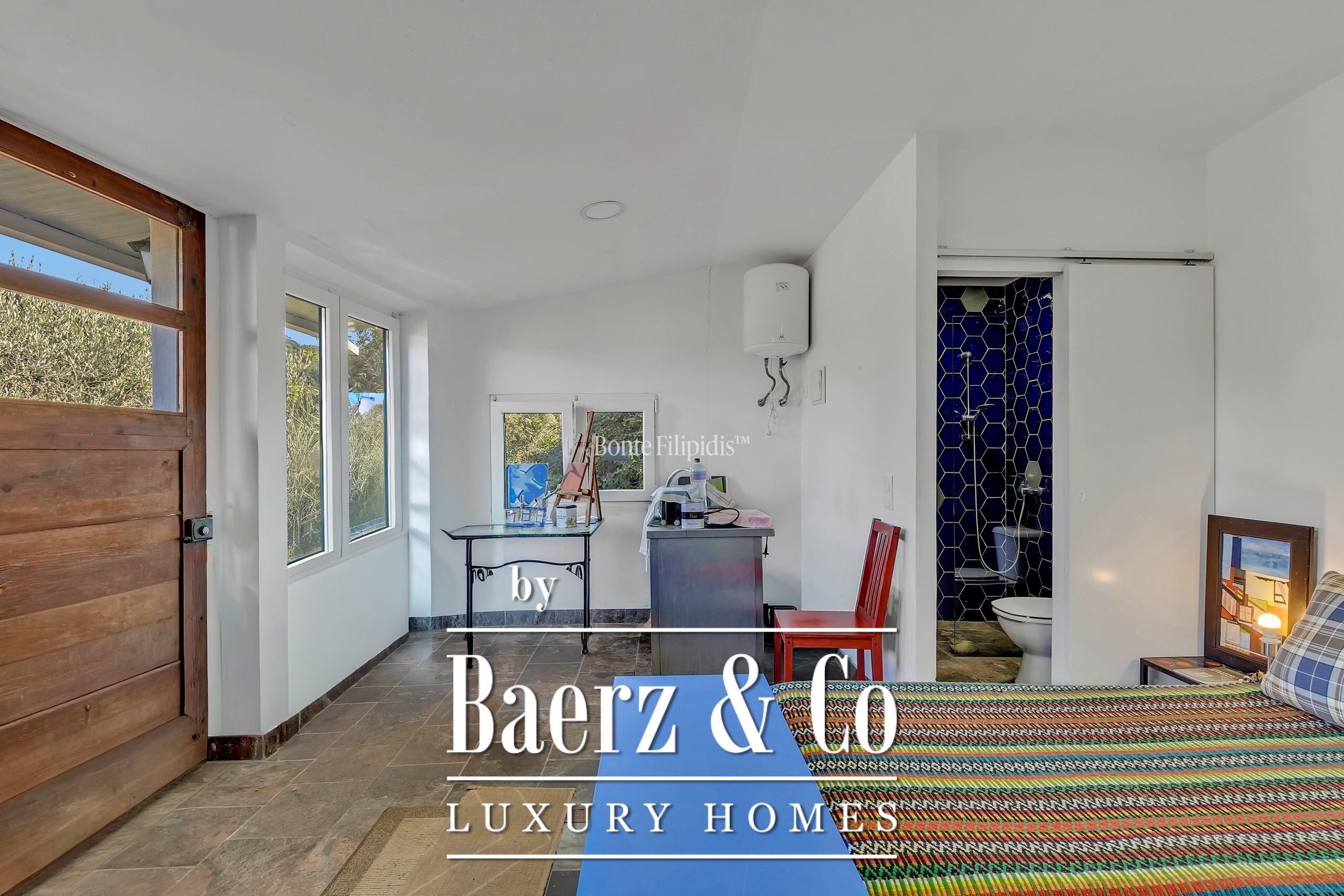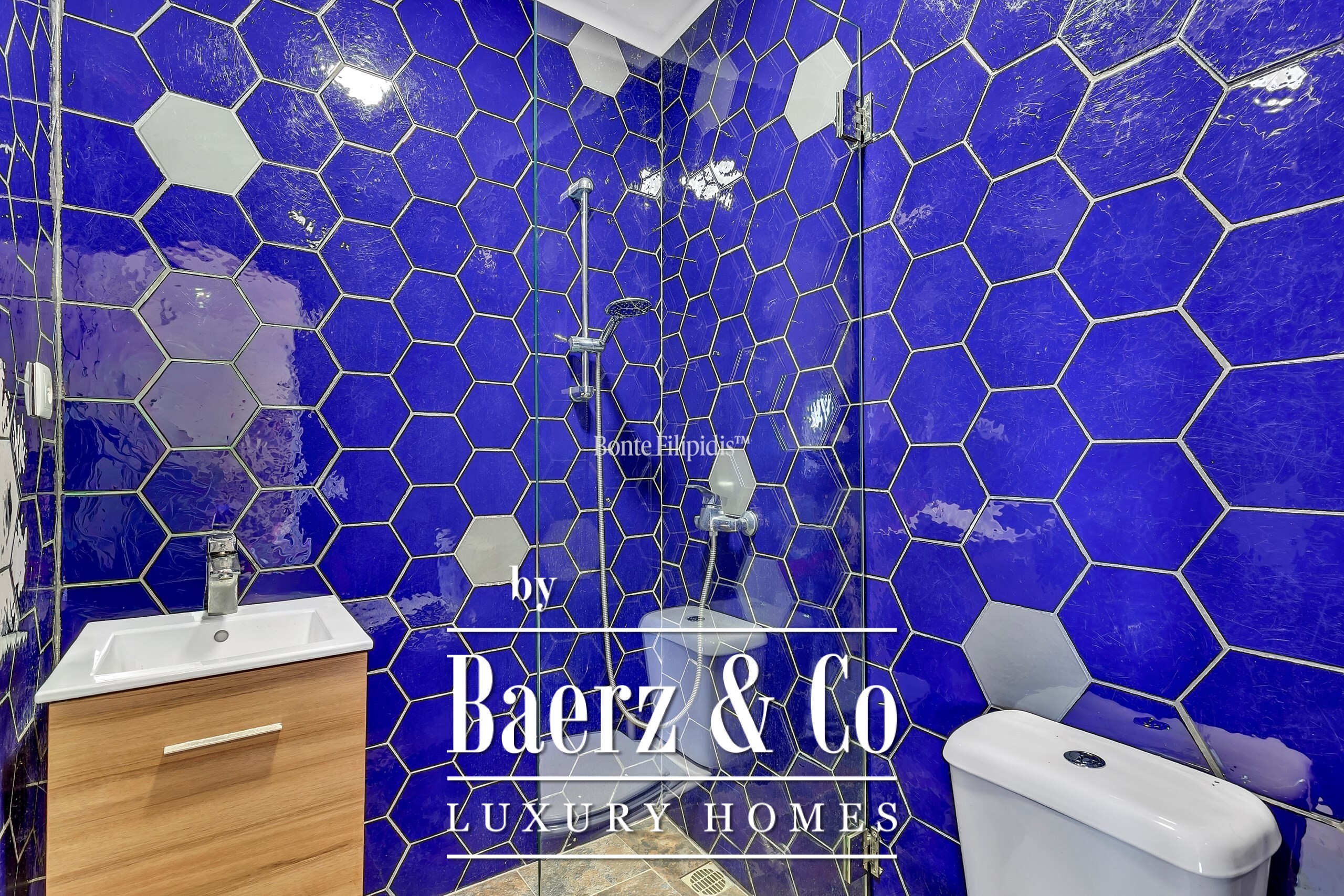 A quietly functional layout defines the interiors. Two distinct living rooms, one anchored by a fireplace, open onto a panoramic balcony, while a spacious kitchen, three bedrooms including a suite, and a dedicated playroom offer ample space for living and entertaining. Terracotta floors, double-glazed windows, and built-in wardrobes showcase traditional finishes and comfort. Thoughtful inclusions such as a wine cellar and generous entrance hall enhance the sense of arrival.