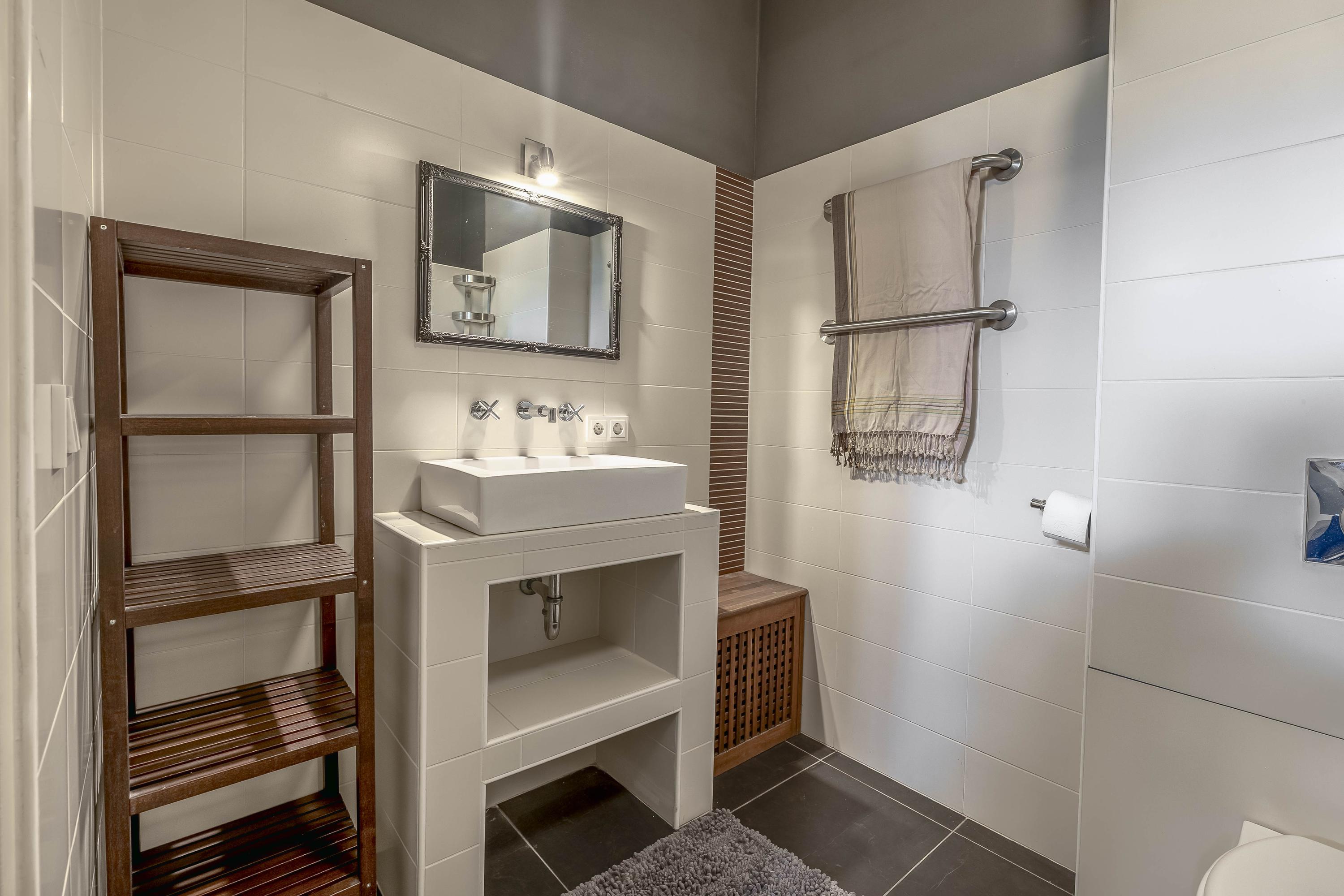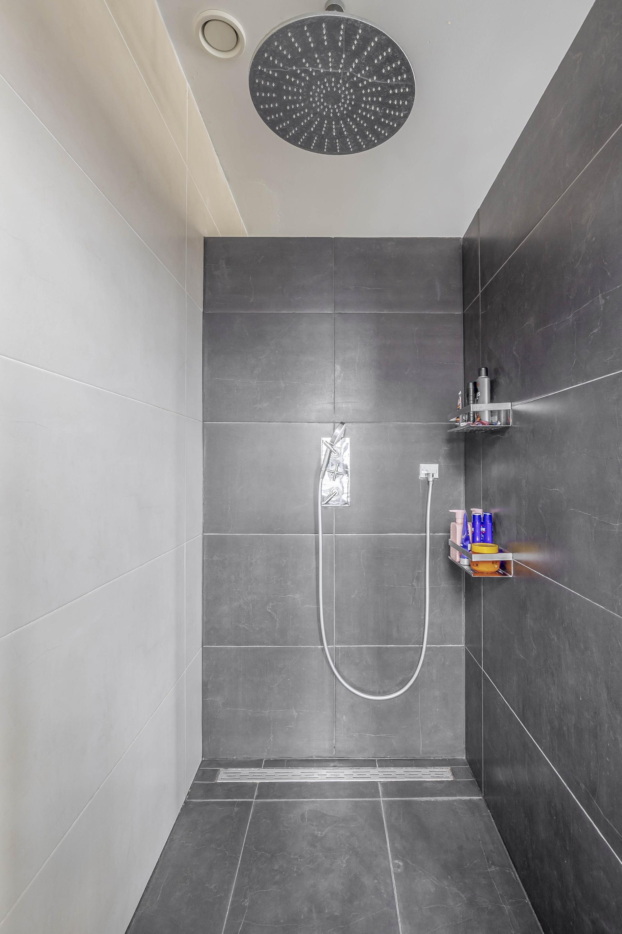 The interiors unfold across three levels of understated quality, from the kitchen’s elevated position overlooking the street, to a living room that soars to 3.5 meters, seamlessly connected to the private south-facing garden. Five bedrooms and four bathrooms, including en-suite master quarters and two additional luxurious baths, accommodate both retreat and gathering. Material choices—stone floors, stucco finishes, plastic window frames with HR++ glass—balance resilience with calm tactility, while underfloor heating and cooling in most rooms ensure effortless comfort.