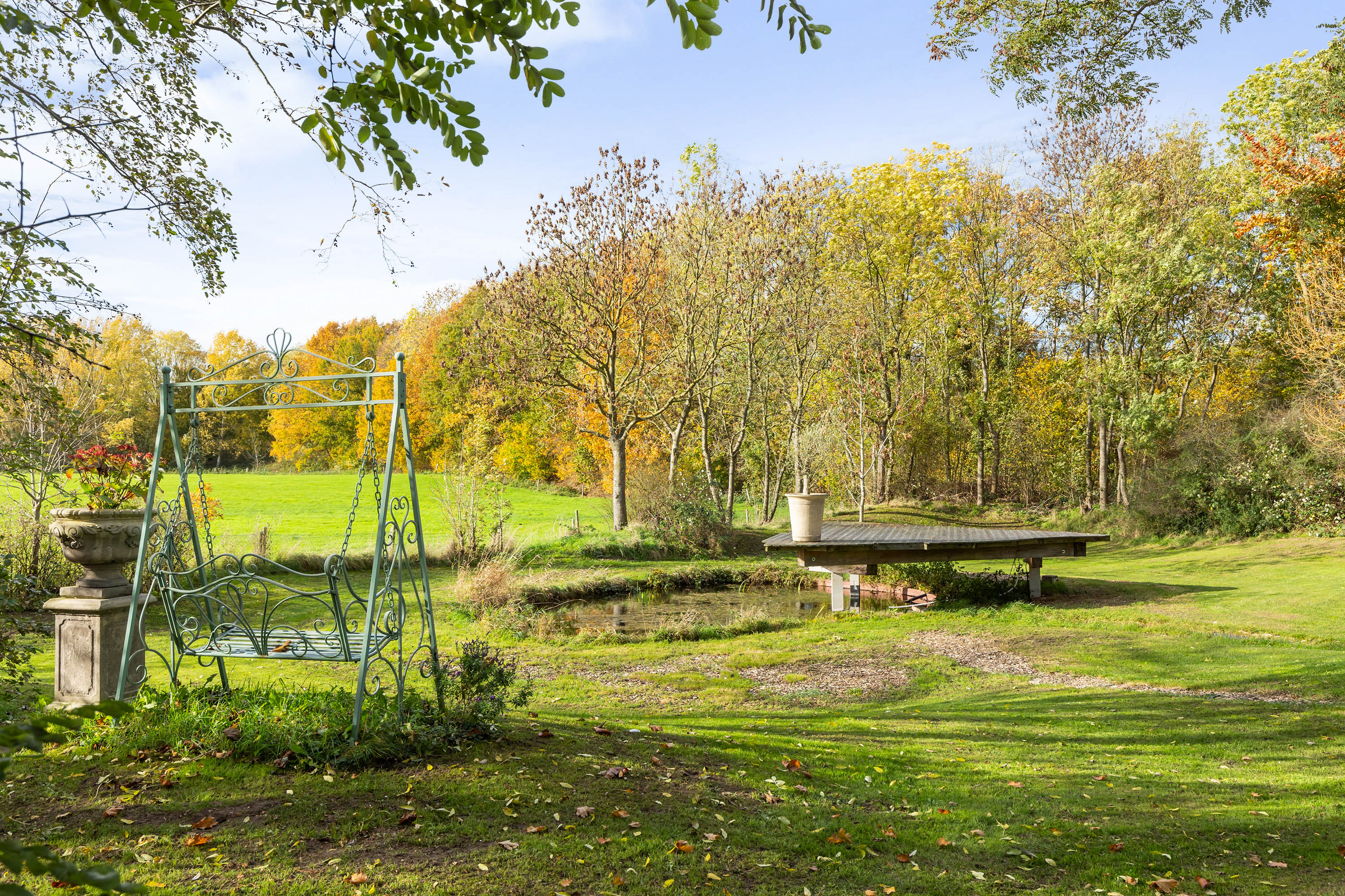 The garden surrounding the property has been landscaped with great care for atmosphere and tranquillity. Facing south, the rear garden blends seamlessly into the surrounding fields, while mature trees and hedges provide privacy. A romantic gazebo, a gently flowing stream with footbridge, and a floating deck with panoramic views together create a place where nature and design meet in harmony. A carport, timber outbuilding and fully enclosed grounds offer comfort and security for both residents and animals.