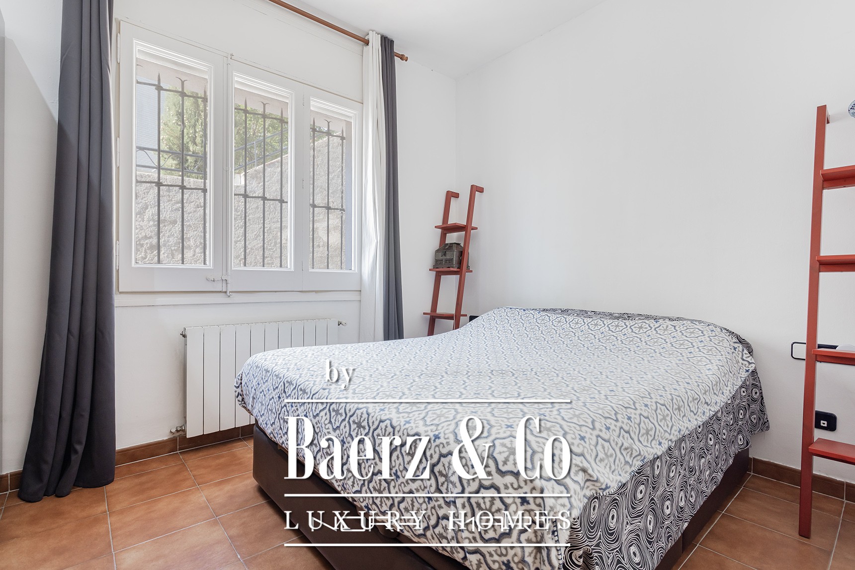 This house Esplugues de Llobregat stands within the La Miranda district, set on a 900 m² plot that ensures privacy and sweeping views over the surroundings. The residence presents a rare architectural profile and spacious south-facing grounds, offering both tranquility and an elevated sense of space. Across 123 m² of living space arranged over two levels, the current layout includes three bedrooms and two bathrooms. The upper floor houses the main residence, while the lower level accommodates parking for one vehicle, with both levels connected by elevator for ease of movement.