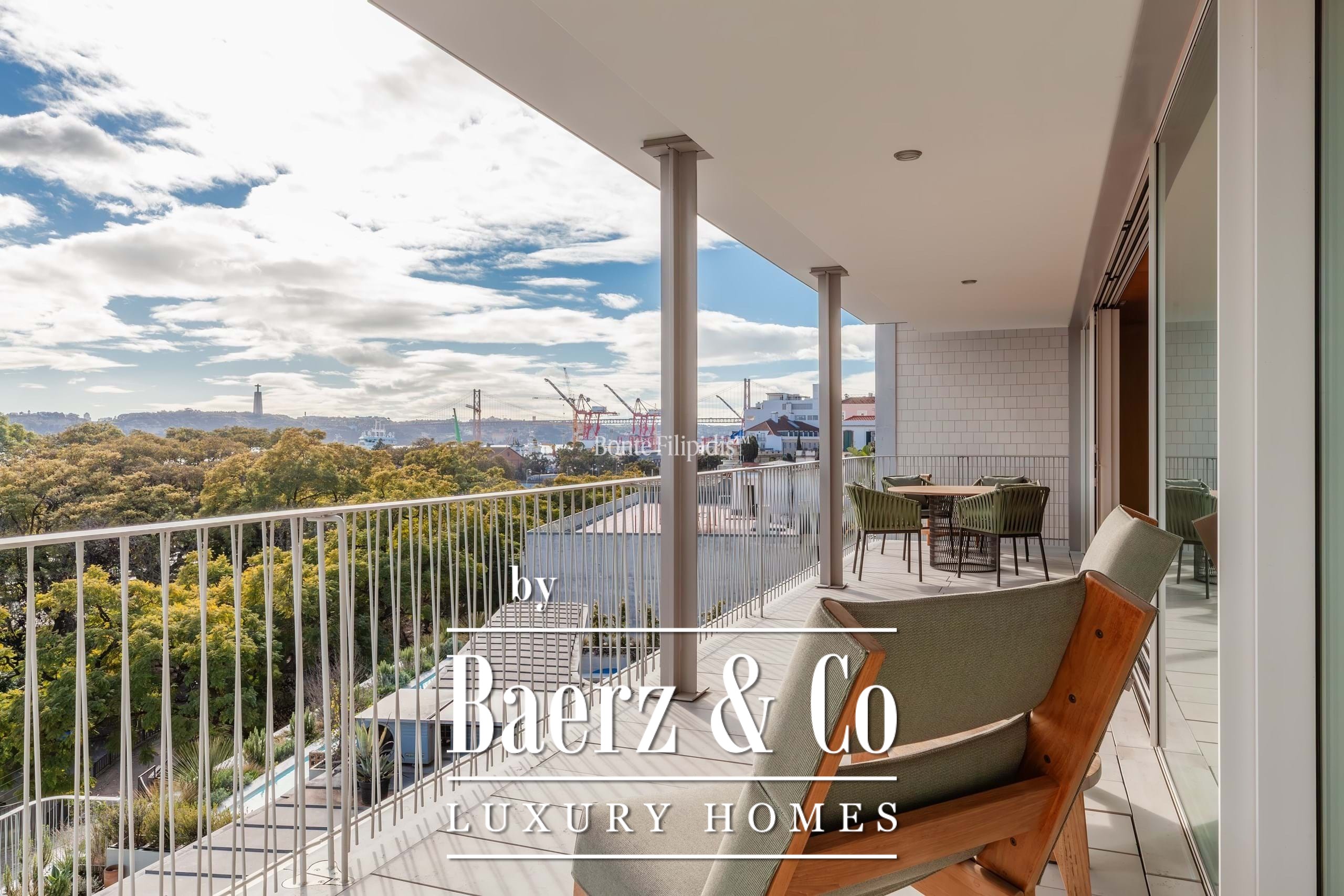 Apartment Estrela Lisbon is set in the creative enclave of Santos, known for its energy and riverside allure. This four-bedroom residence offers 248 m² of living space, where refined design and light are constant companions. A 46 m² private terrace, oriented south, connects interior and exterior, framing panoramic views of the Rio Tejo, Cristo Rei, and Largo de Santos, and offering sunlight throughout the day.