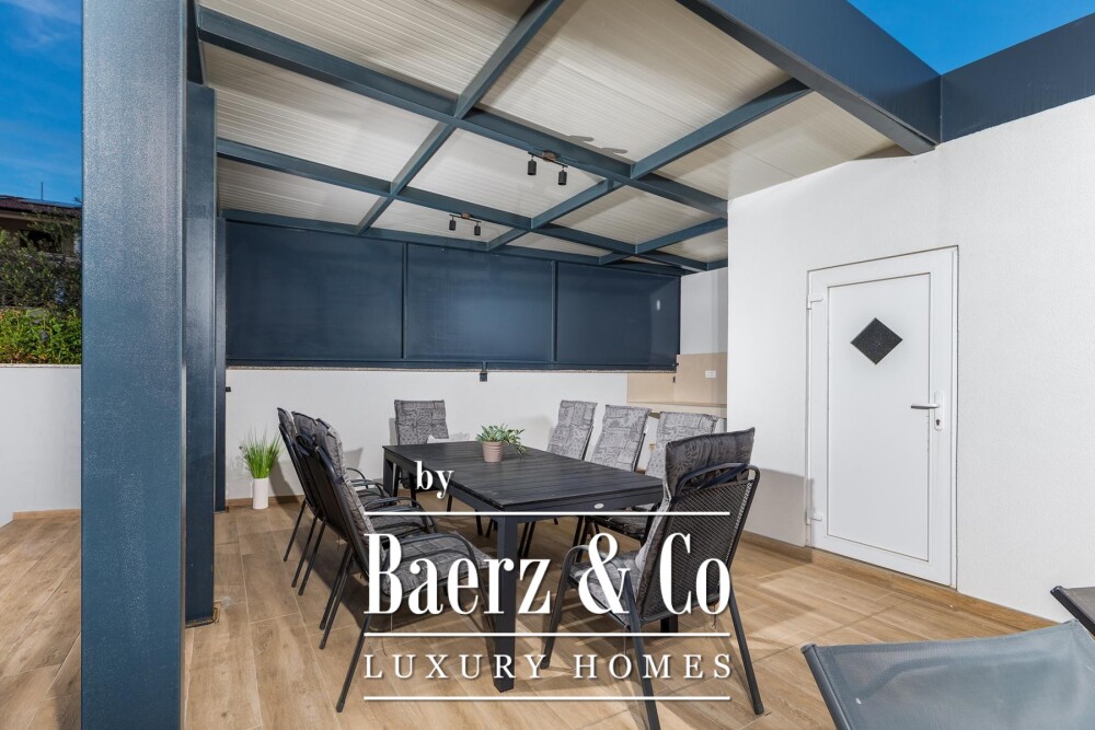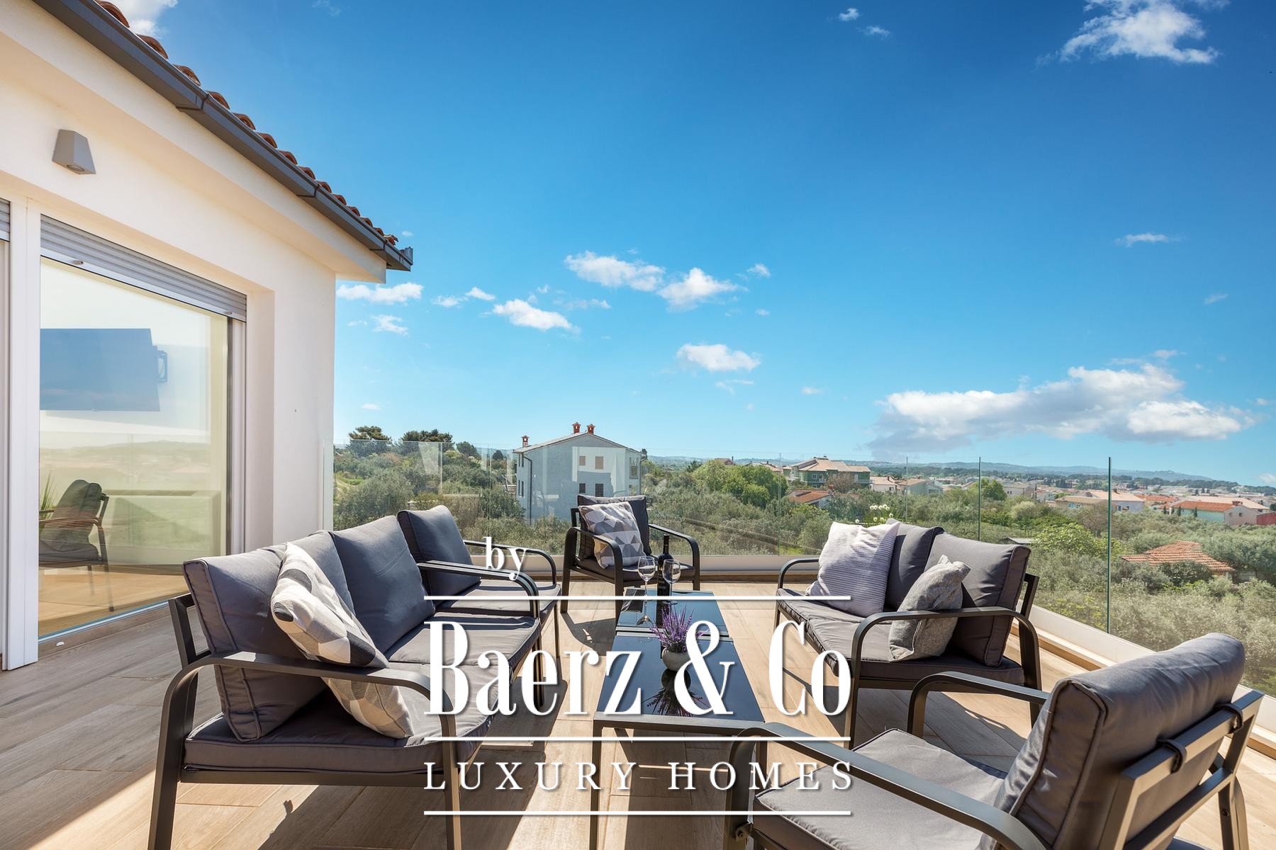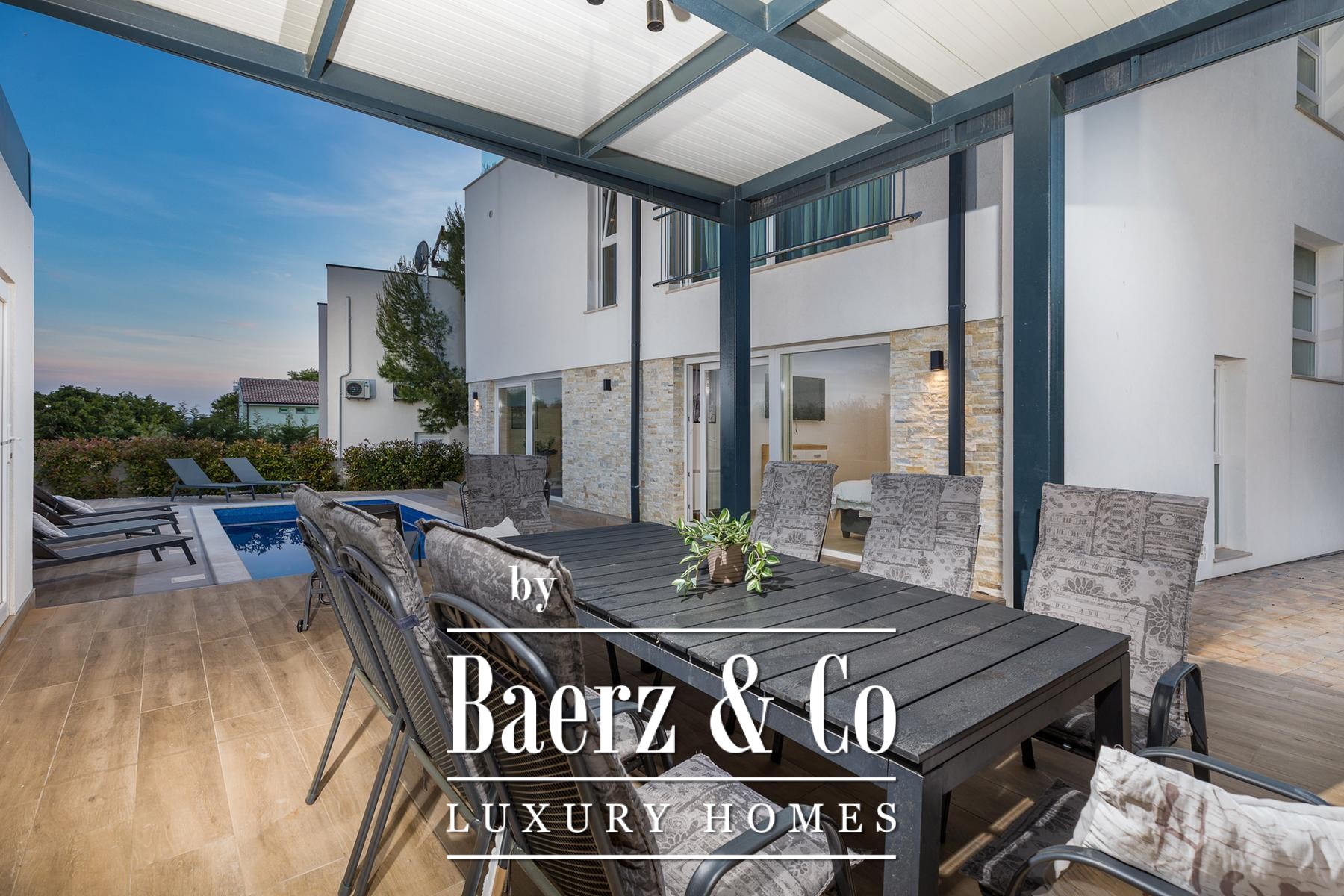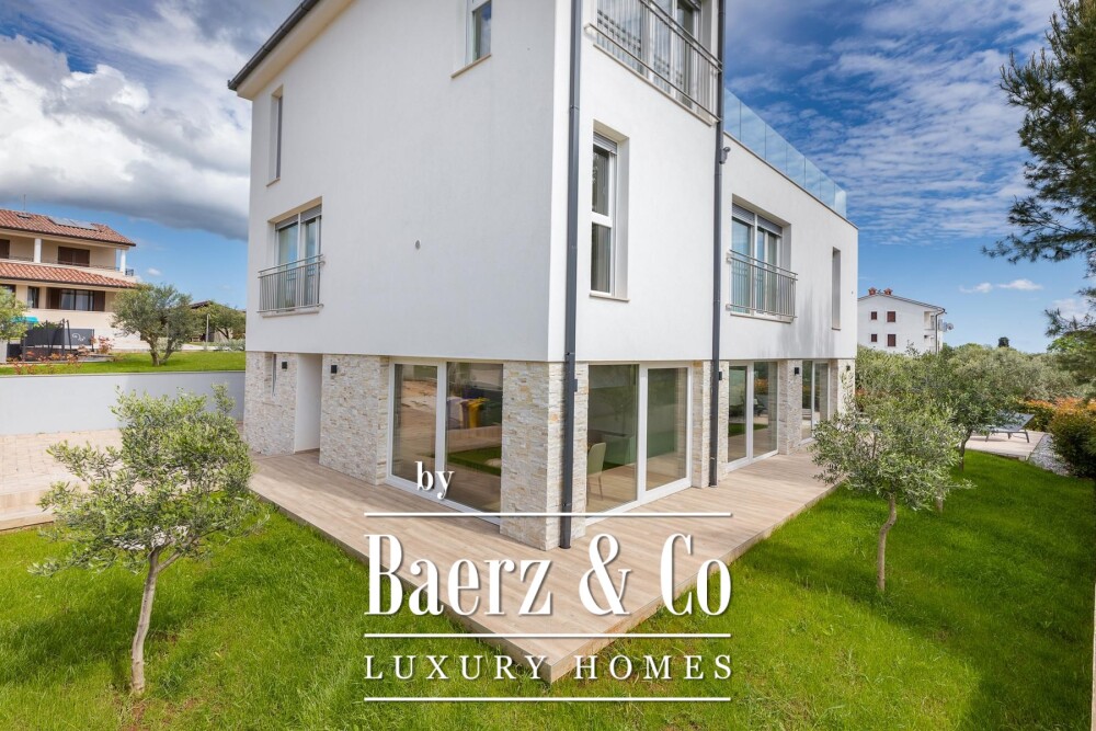 Villa Fažana stands just 700 metres from the Adriatic, blending modern architecture with a sense of openness on a landscaped 490 m² plot. This villa Fažana is thoughtfully arranged across three floors, offering 360 m² of interior space, and an atmosphere defined by light and fluidity.