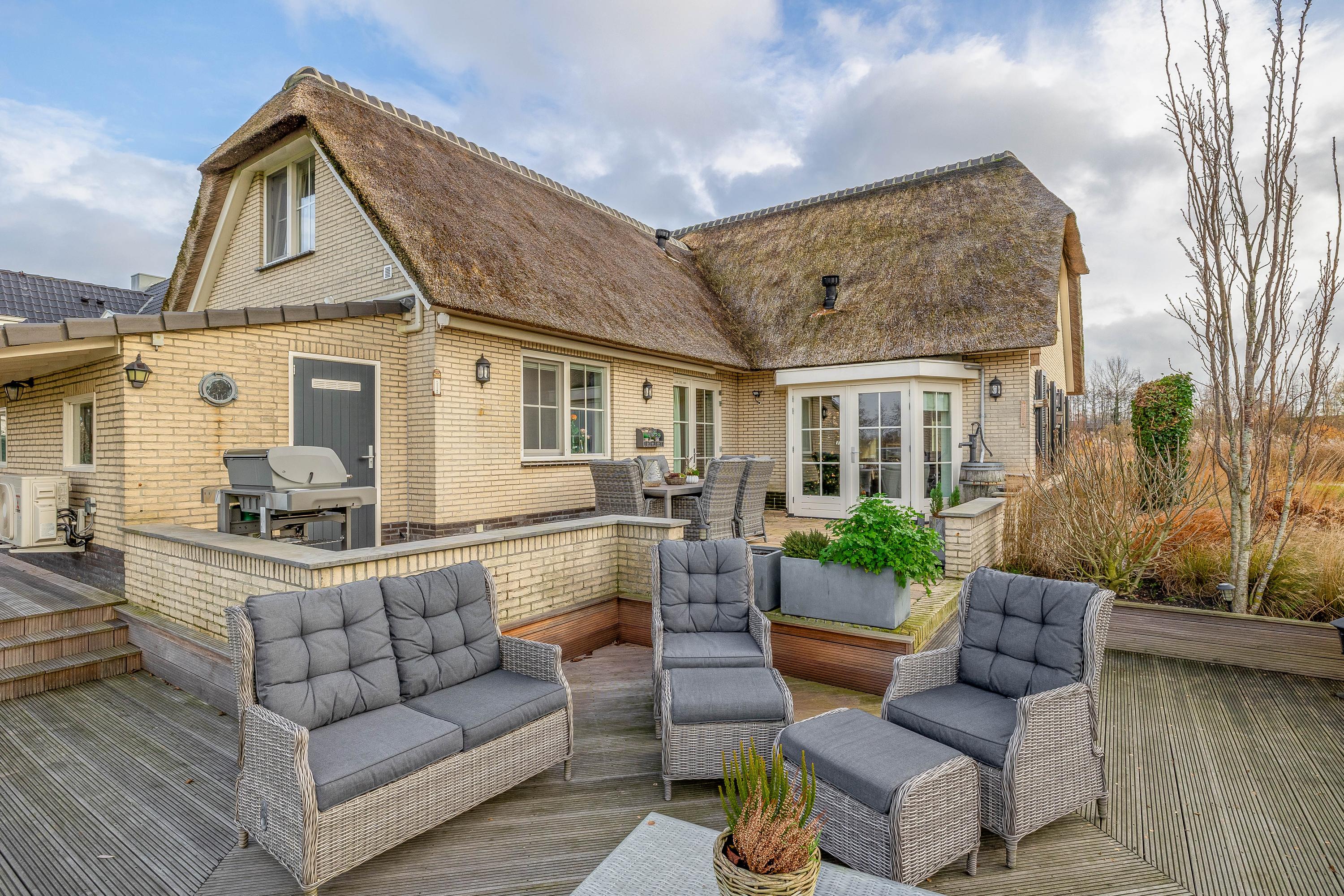 What immediately stands out upon arrival is the attractive thatched roof, the charming façade and the beautifully landscaped front garden. The property is located on a dead-end street, surrounded by peace, greenery and sweeping views over the meadows. Yet you are surprisingly central here: the historic city centre of Gouda, the train station and the main roads towards the A12 and A20 motorways are all just minutes away. This makes the home ideally suited for families who want to live rurally with the conveniences of the city nearby, or for those who wish to live on one level with space for home care or guests.