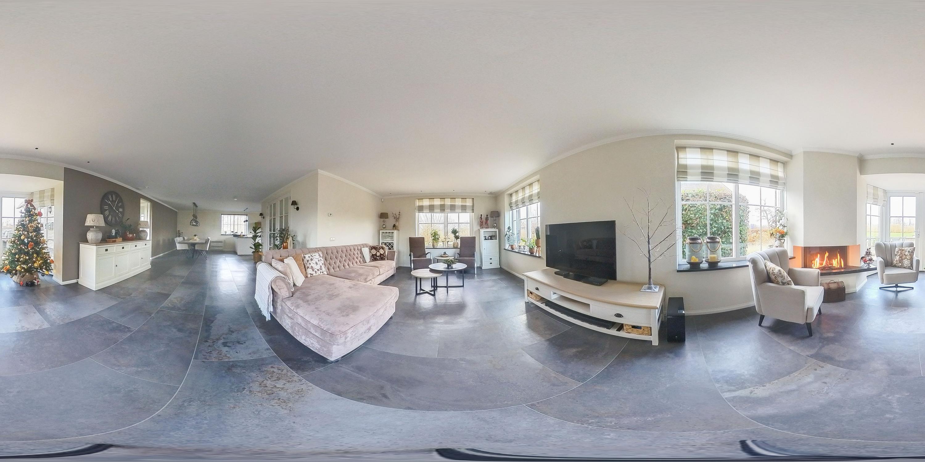 Through the stylish entrance you enter a spacious hallway with a renovated floating toilet and washbasin. Double doors lead to the very generous living area, which was completely renovated in 2022. The living space consists of a luxury open-plan kitchen, dining area and sitting area with bay window and French doors opening onto the terrace. The modern kitchen is fully equipped: an induction hob with Bora extraction, two identical combination ovens, a large refrigerator and freezer, dishwasher, Quooker and a composite worktop. In the utility room you will find connections for a washing machine and dryer, as well as a door to the outside. Thanks to the large windows and the bay window with French doors, daylight floods in abundantly. The atmospheric gas fireplace and recessed spotlights complete the picture. Also on the ground floor is a spacious bedroom with custom-made wardrobes and a luxury en-suite bathroom (2022) with walk-in shower, floating toilet, washbasin unit and designer radiator. This makes single-level living possible without sacrificing comfort.