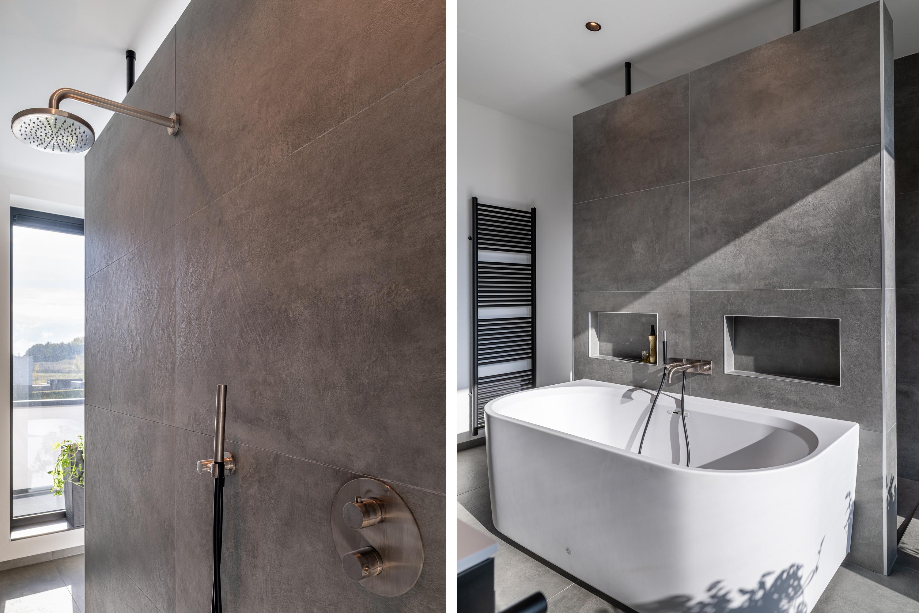 The dressing area connects to the fantastically equipped ensuite bathroom, which features a bathtub, a spacious walk-in shower with rain shower function, and a stylish double sink with vanity. A luxurious space to start the day relaxed or end it in peace and quiet.