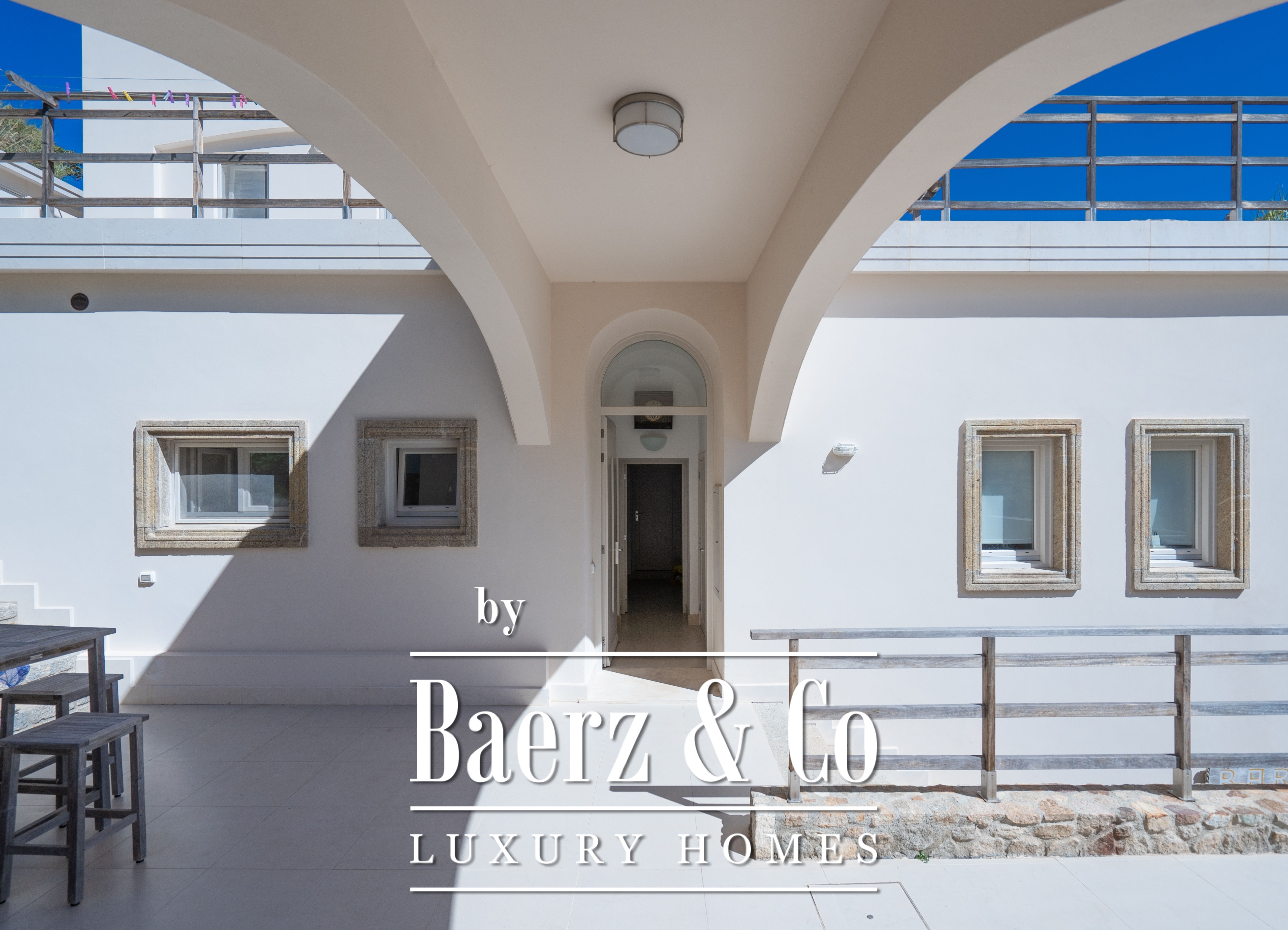 Real estate complex consisting of a large villa with five apartments. There is a main house with 4 apartments in two buildings connected by a walkway and another apartment in a separate building. The property is surrounded by a thriving olive grove and mediterranean vegetation.