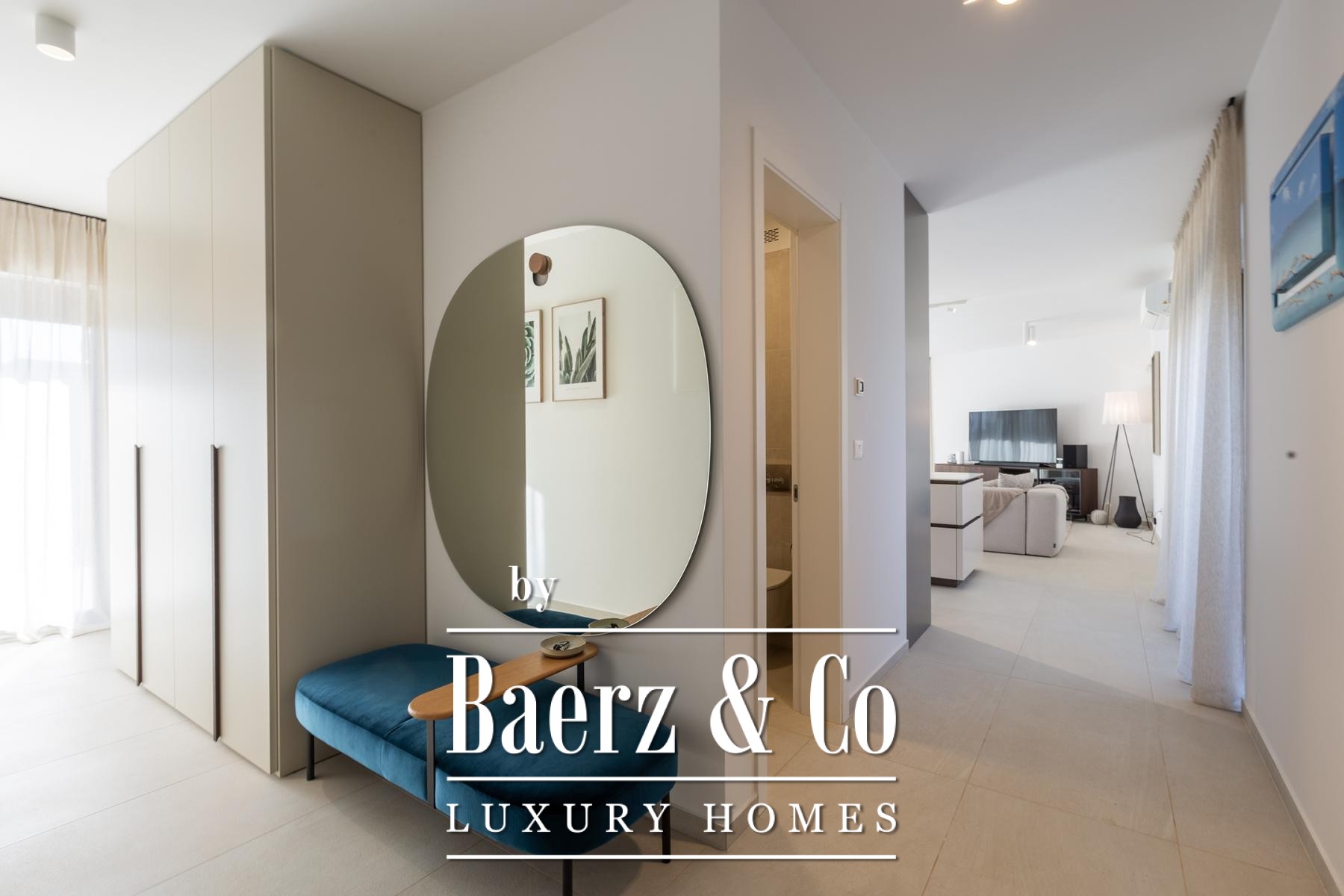The townhouse Kaštelir-Labinci embodies a composed blend of modernity and functionality, offering 147 m² of living space in a region renowned for its desirability. This single-story residence delivers a spatial experience defined by clarity and comfort. An open kitchen with island flows seamlessly into the dining and living area, inviting natural light while offering direct access to a covered terrace and pool. Three bedrooms, each with a private bathroom and direct garden access, anchor the sense of calm and privacy throughout the home.