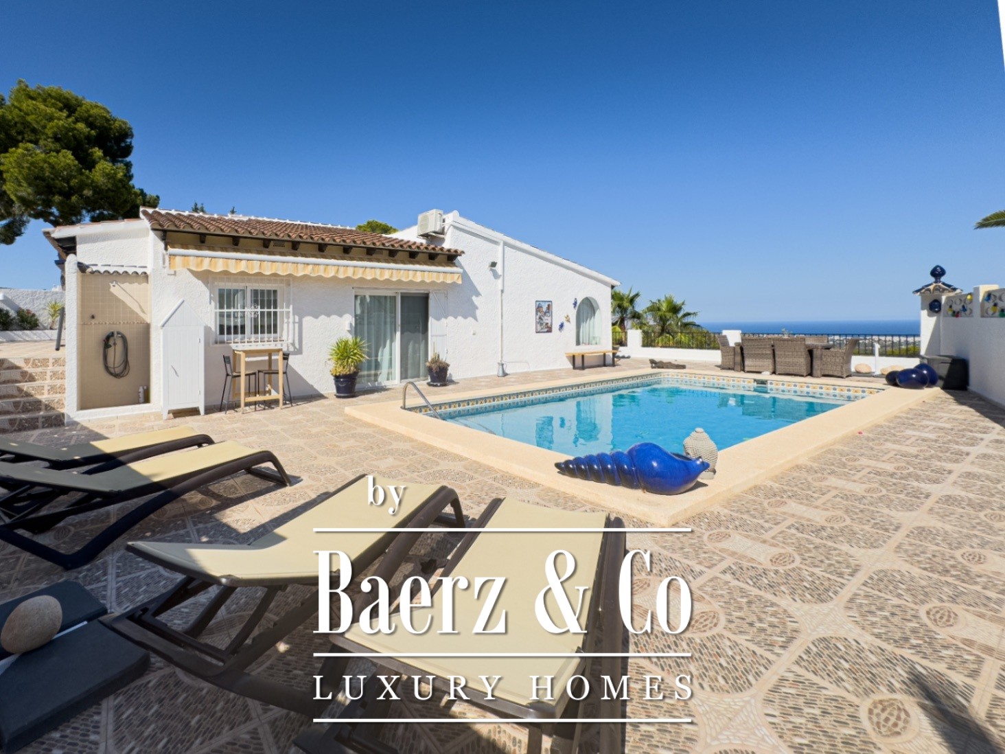 Outside, an array of palm and fruit trees create a sense of quiet seclusion. The private pool, dedicated parking, and refined garden spaces complete the sense of retreat. The outdoor kitchen enhances the Mediterranean atmosphere, making alfresco living effortless.