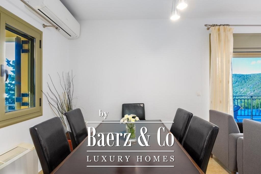 Outdoors, the infinity pool, BBQ area, aromatic gardens, and several dining and relaxation zones create a setting to savour. Features include autonomous fan coil heating, air conditioning, a solar water system, double glazed aluminum frames, and dedicated parking for two cars. This villa invites a lifestyle of quiet refinement and proximity to the heart of Lefkada’s rare natural beauty.