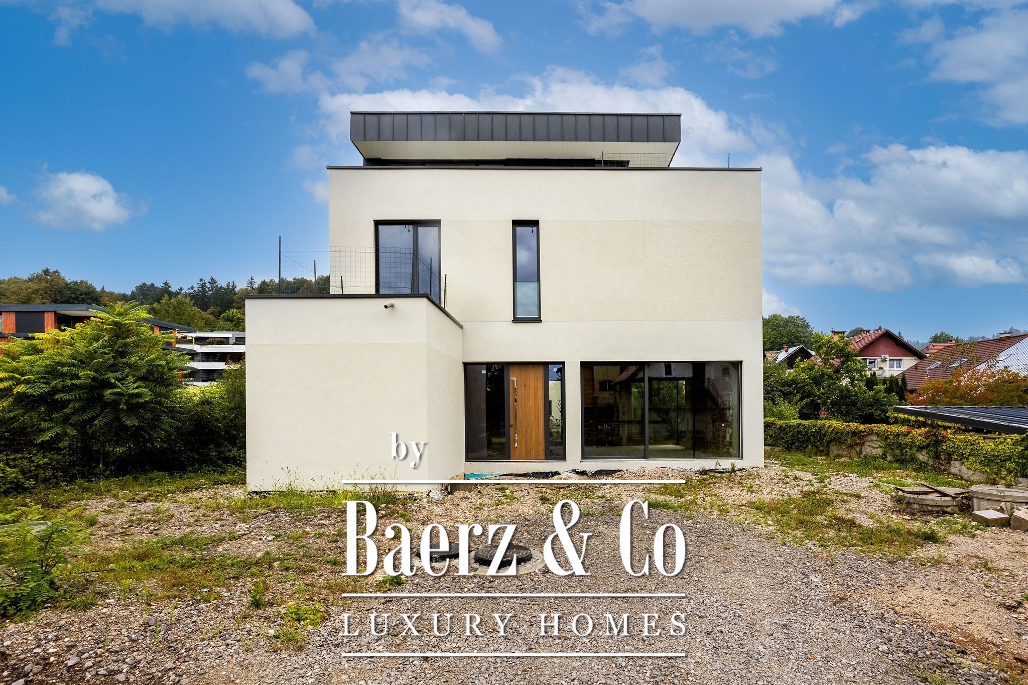In one of the most desirable and elite locations in Ljubljana, in the heart of Rožna Dolina, a spacious and bright villa in the extended third construction phase is for sale. With its contemporary architecture, high ceilings, and panoramic windows, it creates a sense of space, airiness, and openness towards nature.