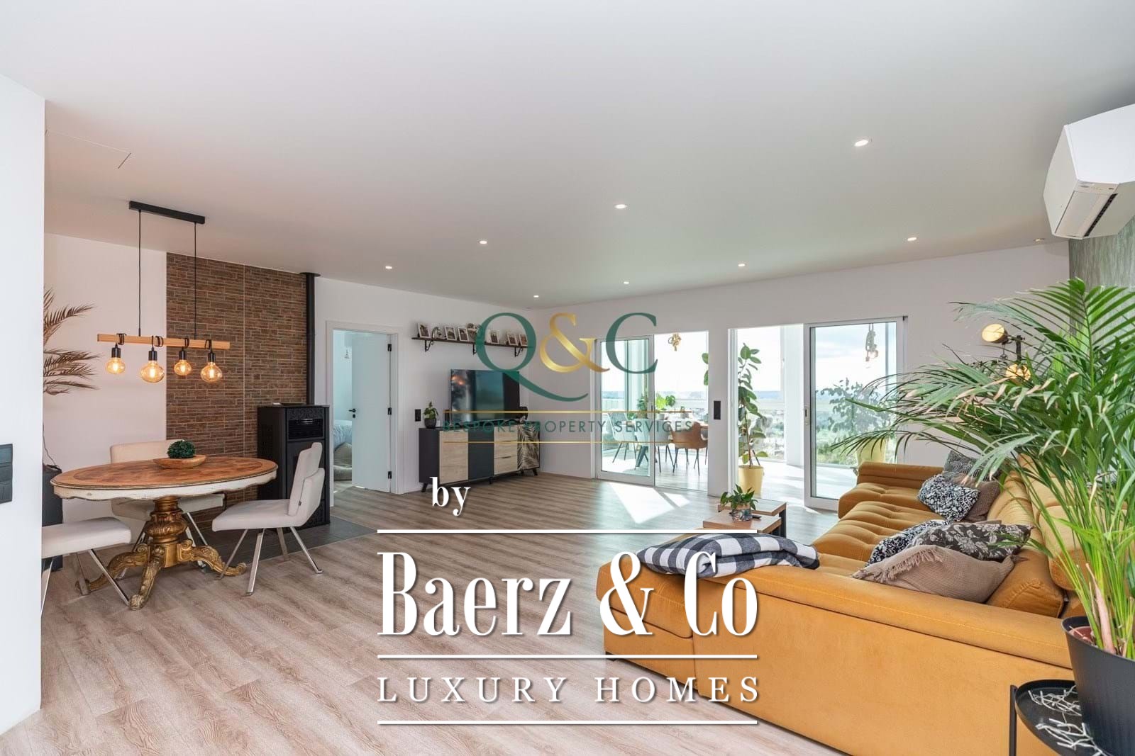Sitting on 900 m² of the main plot, the property also includes an adjacent building plot of approximately 600 m², offering future opportunities from guesthouse construction to expanded gardens. Features such as air conditioning, solar hot water, security, fireplace, and built-in garage further support comfort. With panoramic sea and countryside views and a versatile layout, this detached villa Loulé is suited for family life, multi-generational living, or as a luxury villa for sale in Loulé appealing to discerning investors.