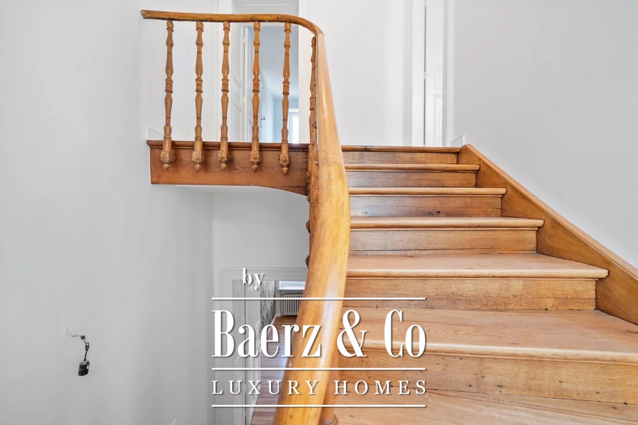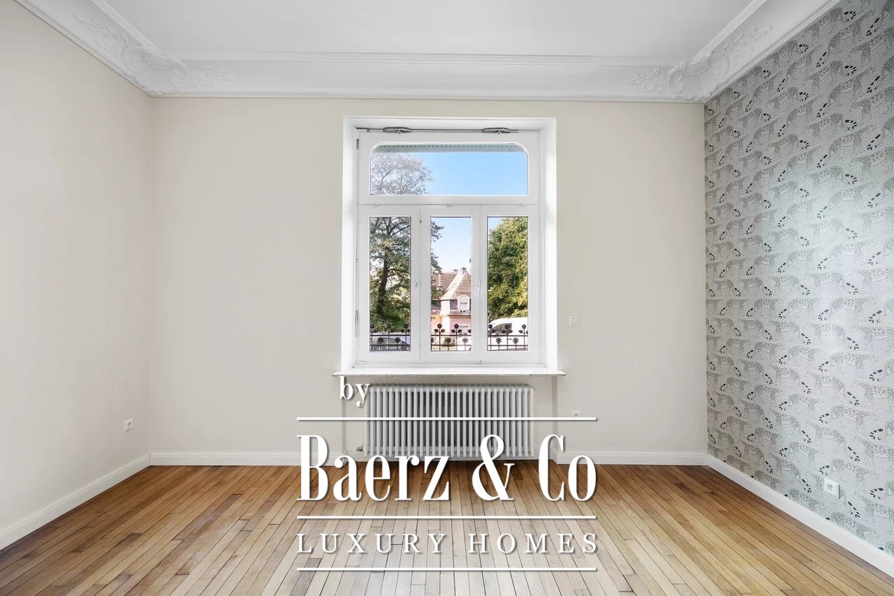 Townhouse Luxembourg forms the focus of this rare opportunity, set at 22 Boulevard de la Pétrusse in the capital’s heart. This 1920s residence presents 160 m² of gracefully updated living space, harmonizing original detail with discreet contemporary finishes. The recent renovation in 2025 elevates ceiling heights to 3.30 meters in the double living room, complemented by double glazing and convector heating for year-round comfort.